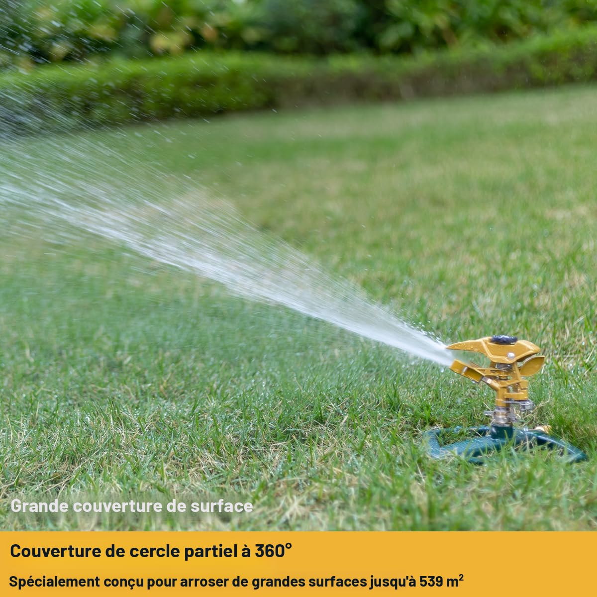 L'arroseur lui-même a un raccord de tuyau rotatif, de sorte que l'arroseur et le tuyau restent à plat lors de l'installation. Pied stable contre le basculement : l'arroseur de pelouse avec base en métal contribue de manière significative à sa stabilité. Arrosage Jardin Automatique Arroseur Pulsation Jardin Arroseur à Impulsion 360° - Alliage Zinc Pour Pelouse Et Jardin Arroseur Rotatif 360° Alliage Zinc Arroseur Pelouse Métal Arroseur-canon sur pic Cofort de Gardena : arroseur de grande surface... Le châssis robuste l'empêche de basculer ou de bouger pendant l'utilisation. Précautions d'emploi : Les mesures étant prises à la main, les tailles indiquées peuvent varier légèrement., 2., La couleur de l'article peut varier légèrement de celle de la photo en fonction des paramètres Contenu de l'emballage : 1 arroseur de pelouse. Grâce à ces multiples possibilités de couverture, vous pouvez vous attendre à ce arroseur une excellente performance pour arroser des pelouses de différentes tailles. Convient pour l'agriculture, la pelouse, le jardin, la terrasse, la serre, les parterres de fleurs, la piscine, la pulvérisation, le refroidissement, l'arrosage, etc. L'alimentation en eau domestique est sous pression suffisante pour permettre un arrosage automatique du jardin sans avoir besoin d'appareils supplémentaires. Matériaux de qualité supérieure : l'arroseur de pelouse dispose d'un socle et d'une buse en alliage de zinc durable, robuste et résistant à la rouille, à la corrosion et à l'abrasion. Lorsque l'arroseur est utilisé comme un arroseur unique, l'embout peut être recouvert pour empêcher la poussière de pénétrer. L'arroseur à base métallique est équipé d'un rayon réglable qui vous permet de contrôler la zone de pulvérisation de cet appareil d'une plage partielle de 20° à un rayon d'arrosage complet de 360°. Ce design à flux vous permet de connecter plusieurs arroseurs en série pour couvrir une plus grande zone d'arrosage en fonction de la pression de l'eau. Avec un simple tour du robinet, toute la cour est arrosée en même temps, sans déplacer d'arroseurs 【Facile à utiliser】L'arroseur de pelouse avec base en métal est très facile à utiliser : il suffit de brancher le tuyau et d'ouvrir le robinet. Lorsque l'arroseur est connecté en série, il suffit d'ouvrir l'embout de l'extrémité. La construction entièrement métallique est conçue pour résister à l'usure à laquelle la plupart des arroseurs à impulsions sont exposés dans des conditions météorologiques humides et extrêmes, vous offrant un service fiable pendant des années. Lot de 5 Arroseur à pulsation, arroseur de pelouse réglable, 6 à 12
