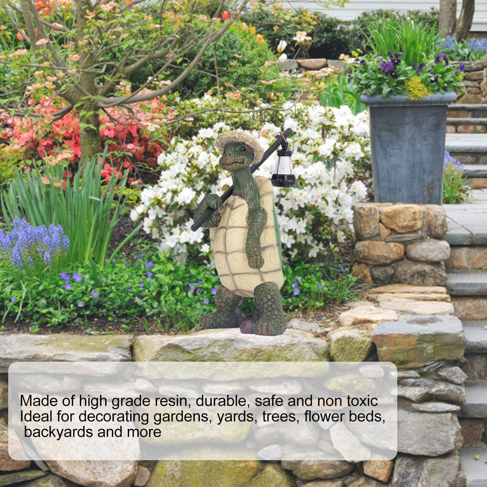 Ornement Extérieur Mignon VGEBY Décoration De Jardin De Tortue Figurine De Tortue Miniature En Résine Synthétique Décoration Patio Tortue Décorations de pot de fleurs de tortue bleue – Résine à Pot de fleurs en résine en forme de tortue - Figurine grimpante - Sculpture de jardin décorative pour extérieur, accessoire de cour mignon pour clôture... Liste d'emballage : 1 * tortue de jardin Notes : 1., En raison des différences de moniteur et d'éclairage, la couleur réelle de l'article peut être légèrement différente de la couleur sur les photos., 2., Veuillez pardonner un léger écart de mesure dû à la mesure manuelle. Taille du produit : La taille parfaite d'environ 8x5,5 cm en fait un ajout charmant à vos pots de fleurs et attire sans effort l'attention des gens. Installation facile : Aucun assemblage n'est nécessaire car la décoration de jardin extérieur a un design grimpant résistant aux intempéries qui peut être facilement accroché aux clôtures, aux jardinières, aux aquariums, aux vases, aux branches ou à d'autres surfaces pour ajouter du charme et de la personnalité à votre espace extérieur. Caractéristiques spéciales : 1., Matériau de haute qualité, robuste et durable., 2., Nos figurines d'animaux vous apporteront beaucoup de joie grâce à leurs détails peints exquis. Décoration unique : Ce tabouret de bord imaginatif, résistant aux intempéries et doté d'une silhouette enveloppante, ne manquera pas de faire sourire les gens et d'apporter un charme et un caractère uniques en tant qu'accroche-regard décoratif ou en tant que complément d'un extérieur existant. Large application : Nos suspensions de plantes en forme de tortue conviennent à une utilisation intérieure et extérieure. C'est également un excellent choix comme cadeau pour la famille et les amis. UTILISATION POLYVALENTE : Idéal pour une utilisation intérieure ou extérieure, ce pot de fleur de tortue suspendue peut être placé sur un aquarium, des clôtures...
