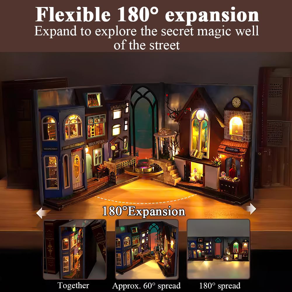 Convient aux adolescents et aux adultes. DIY Book Nook Kit aison De Poupée, OJINO iniature en Bois avec... Parfait pour tous les passionnés d'artisanat et les collectionneurs de modèles miniatures, c'est une façon significative de montrer votre amour. Avec des lumières LED intégrées, il apporte chaleur et une ambiance romantique à votre coin de bibliothèque la nuit. Wonderland Garden House Kit Pour Book Nook - Maison De Jardin - Diorama - Serre-livres - Puzzle 3D En Bois - Kit De Modélisation Miniature Pour Adultes - Modélisme De Diorama Pour Adultes - Décoration Nook Book 【Utilisation Polyvalente et Choix de Cadeau Idéal】: Ce kit de livre puzzle DIY est non seulement une décoration époustouflante pour les étagères ou les bureaux, mais aussi un cadeau créatif pour les anniversaires, les fêtes ou les occasions spéciales. Les enfants doivent assembler sous la supervision d’adultes pour éviter l’ingestion. Les pièces en bois se détachent facilement du cadre pour un ajustement parfait lors de l'assemblage. 【Assemblage Facile】: Le kit est livré avec des pièces pré-numérotées et des instructions de montage détaillées pour une construction facile et fluide. Pour des raisons de transport, veuillez ajouter 2 piles AAA et de la colle pour le collage à la main. Chaque détail, de la maison aux fleurs, est fait à la main. 【Profitez du Fait Maison et Éveillez la Créativité】: Le kit comprend des pièces en bois découpées au laser avec précision et des instructions détaillées, ce qui le rend facile à compléter pour les débutants. Kit de décoration magique pour bibliothèque avec LED - Puzzle 3D en... 【Design Unique pour Créer Votre Mini Jardin】: Ce kit de livre puzzle 3D DIY combine des modèles 3D avec une décoration de bibliothèque pour créer le charme d'un mini jardin. Vous devrez également apporter vos propres outils (voir les instructions). Hamaileon Book Nook Kit 3D rompecabezas de madera sujetalibros en miniatura para
