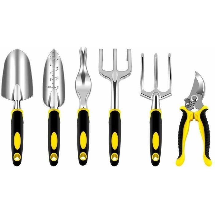 Ensemble D'Outils De Jardinage Pour Femme - 16 Pièces - En Acier Inoxydable - Robuste - Avec 【Ensemble combiné】Ensemble d'outils de jardinage ensemble de 7 pièces comprenant une pelle, un râteau, un transplantoir, un sécateur, un tapis de jardinage, des gants et un sac de rangement. Kit 7 Outils Jardin 7PCS Ensemble D'outils De Jardinage En Acier Inoxydable Robuste Avec Poignée En Caoutchouc Antidérapante Et Sac De Rangement Pour Outils De Jardin à Main En Extérieur Kit Jardinage Adulte Léger et d'une grande dureté, ce matériau s'adapte facilement à diverses tâches de jardinage. Ensemble De 4 Coussins De Chaise De Jardin, 6 Coussins De Chaises... EN STOCK : Kit à Outils de Jardinage, 7 Pièces Outil Jardinage, Ensemble Cadeau de Jardin Résistant à la Rouille avec Un Fourre-Tout de Rangement Durable... Débutants et jardiniers expérimentés peuvent en bénéficier. Ces outils sont conçus pour répondre à vos différents besoins de jardinage, qu'il s'agisse de plantation, de taille ou d'entretien quotidien. Leur portabilité et leur polyvalence en font un choix idéal pour vos activités de jardinage. 【Matériaux de haute qualité】Ensemble d'outils de jardinage fabriqué en alliage d'aluminium de haute qualité, il offre une excellente durabilité et une excellente résistance à la corrosion. Résistants aux rayures et aux taches, ils protègent vos mains des dommages causés par la terre et les outils, garantissant ainsi votre sécurité pendant vos activités de jardinage. Description du produit 1 Avertissement De Sûreté Attention : utilisez les gants de jardinage pour protéger vos mains contre les blessures.