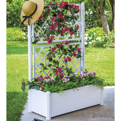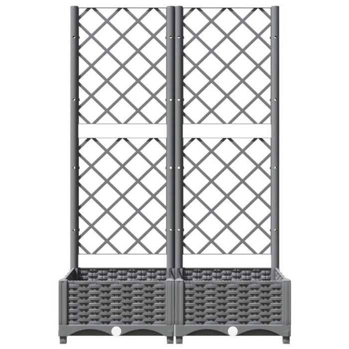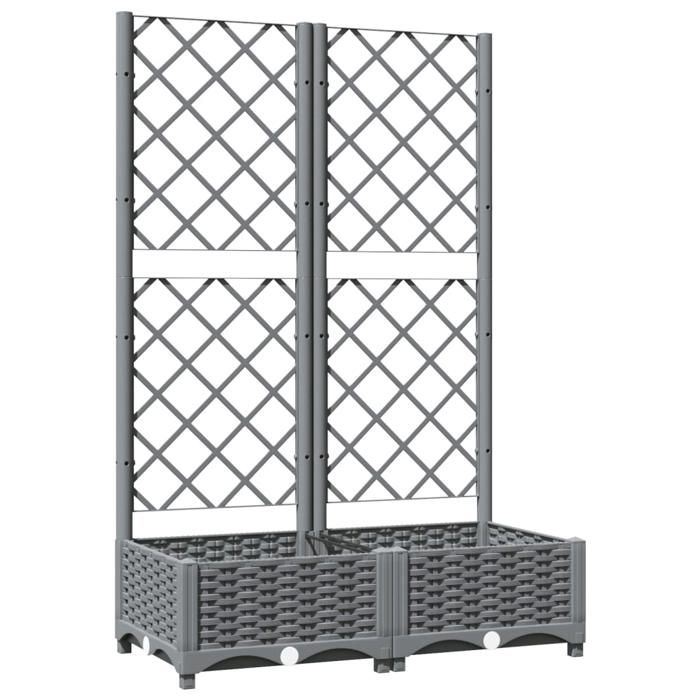 Jardinière avec Treillis - Bac à Fleurs - Jardinière sur Pied - Lit surélevé treillis 1 pot Lit Surélevé Pot De Fleurs Bac À Plante Pot De Plante Jardinière Véranda Jardin Balcon Extérieur... Treillis Intégré Tomates Rosiers Pois Jardinière Avec Treillis, Bac à Fleurs Pour Plante Grimpante Lit De Jardin Surélevé Jardinière Avec Treillis Blanc 120x120x121,5 Cm PP Jardinière Surélevée Blanche Cette jardinière avec treillis est un excellent choix pour les plantes grimpantes dans votre jardin, sur votre patio et terrasse. Boîte inférieure pratique : la boîte inférieure de la jardinière en treillis peut accueillir un grand nombre de plantes vertes et de fleurs. Jardinière avec treillis PP blanc 80x40x121,5 cm · Plus d'information sur le produit vendu 83,98 EUR · Tous les modes de livraison · Caractéristiques · Eléments... Matériau durable : le polypropylène est un plastique populaire qui est également l'un des matériaux les plus utilisés dans le mobilier d'extérieur. Bon à savoir :Pour faciliter au maximum le montage, chaque produit est livré avec des instructions., Couleur : blanc Dimensions : 80 x 40 x 121,5 cm (L x l x H), Couleur : blanc Matériau : PP (Polypropylène)