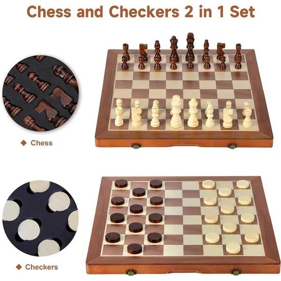 Magnétique Puissant: Le plateau de jeu et les pièces de jeu sont magnétiques, les pièces d'échecs sont maintenues en toute sécurité sur l'échiquier par des aimants intégrés. Cela permet de jouer à l'extérieur, par temps venteux, sur des surfaces inégales ou en déplacement, sans aucun problème. Si vous vous ennuyez d'un jeu, vous pouvez retourner le plateau pour démarrer une nouvelle partie, indispensable pour les longs voyages en voiture. Les pièces d'échecs ont un flocage de bride silencieux intégré, afin que vous puissiez bien réfléchir tout en jouant aux échecs. Jeu D'Échecs En Bois 3 En 1 Portable Échiquier Pliable Echec Chess Même si l'échiquier est secoué, les pièces et la reine restent fermement en place. Le jeu est fabriqué en plastique de haute qualité, chaque pièce d'échecs étant soigneusement conçue pour garantir une surface lisse, des lignes épurées et une texture attrayante. Portable Échiquier Jeu D'Échecs De 2 En 1 Avec Une Carte D'Échecs En... Notre ensemble de jeu laissera certainement une impression durable. Échiquier 5 en 1: Jouez aux échecs, aux pièces d'échecs volantes, aux dames et au backgammon pendant que vous êtes en déplacement. Conception de Stockage: Dispose d'une conception de verrouillage spéciale pour stocker les pièces dans un étui facile à ouvrir et à fermer, un rangement facile. Jeu Société Voyage Compact Portable Échiquier Jeu D'Échecs De 2 En 1 Avec Une Carte D'Échecs En Jeu Voyage échecs Dames Backgammon Voyage Échecs Set Magnétique Échecs Pliable Poche Échecs Portefeuille... Échecs Portables: Les échecs, le backgammon et les dames sont les jeux parfaits pour promouvoir la réflexion tactique et stratégique.