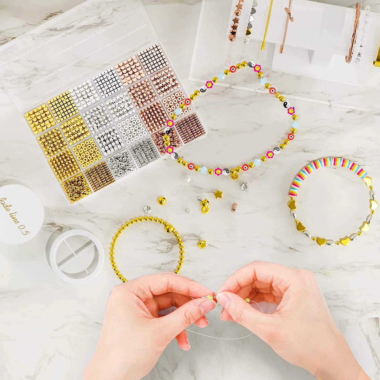 Les créateurs de bijoux, ce kit Zepitniy est une mine d'or ! 1740 perles d'espacement métalliques dans 8 formes différentes : rondes (240), cœurs (150), étoiles... Le coffret comprend 8 formes différentes : perles rondes (240), cœurs (150), étoiles (150), anneaux (300), couronnes (150), strass ronds (150), polyèdres (300... Pendentif Bracelet Jeu De Création Bijoux - CHANGM - Bracelet Perles Rondes Perles étoiles Kit Diy Bijoux Acier Inoxydable Kit Perles Espacement Kit Perles Zepitniy 1740 Pièces - Espacement Bijoux Friendship Bracelet Fil Pour Bracelet Perle