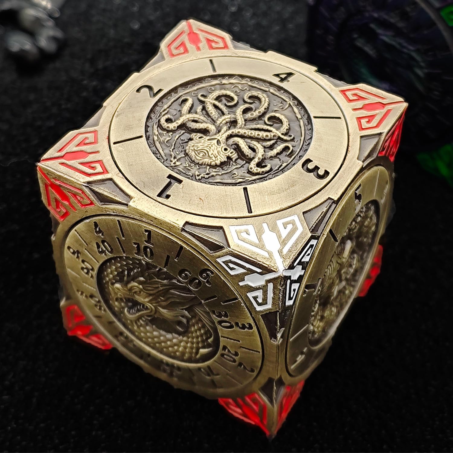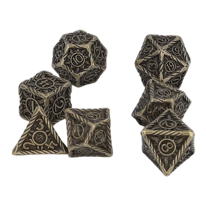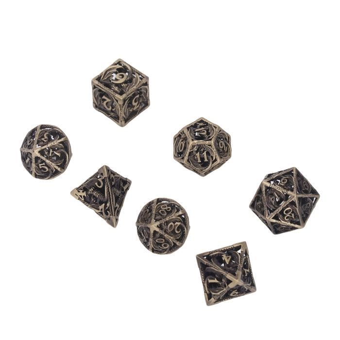 D12 D20 7-Die Dunges And Dragons Pour TRPG DND Paillettes, Accessoire Personnalisez votre jeu avec notre ensemble de dés unique en son genre de 7 pièces. Scellez votre destin à chaque lancer avec des dés en métal : D4, D8, D10, D12 et D20. Chaque pièce est bien équilibrée et douce au toucher, offrant un excellent son de roulement lorsque vous les lancez Pour Donjons Et Dragons Collection Jeu De Dés Polyédrques En Métal DND, Donjons Et Dragons, Grands Dés De Cosplay, Dés D&D MTG RPG Jeu Donjon Et Dragon Matériau métallique de qualité supérieure : fabriqués à partir de métal de haute qualité, ces dés en métal offrent un poids satisfaisant dans votre main, améliorant leur durabilité et leur donnant une sensation luxueuse et tactile. Design en forme de pagode mystique : inspiré des pagodes anciennes, ce jeu de dés DND présente un design unique et complexe qui ajoute un air de mystère à vos aventures sur table. Ensemble de dés rotatifs en métal 7 en 1 u2013 Rehaussez chaque lancer avec une puissance légendaire ! Entrez dans un monde de fantaisie et d'aventure avec... La construction en métal massif assure une expérience de jeu haut de gamme Le mécanisme de rotation innovant garantit des rouleaux imprévisibles, ajoutant une couche supplémentaire d'excitation à vos campagnes Le cadeau parfait pour toutes les occasions : qu'il s'agisse d'un échange d'éléphant blanc, d'un cadeau de Noël, d'une surprise d'anniversaire ou d'une friandise pour votre collectionneur de dés préféré (ou « gobelin de dés »), cet ensemble de dés RPG élégamment emballé est un choix infaillible. Jouet à double usage : conçus pour le jeu et le soulagement du stress, ces dés rotatifs de la taille de la paume offrent une performance fluide et élevée.