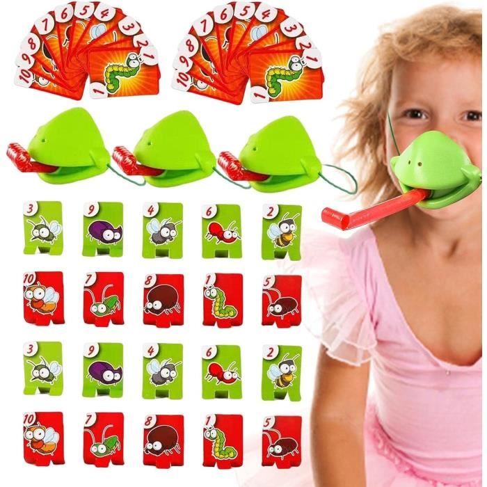 Jeu De Grenouille Jeu De Langue-Frog Tongue Out Jeu De Société | Green Frog Mouth Tongue Catch Game Frog Card Toys Jeu Tire La Langue Grenouille Jeu de tir à la langue caméléon - Jeu d'adresse pour 2 personnes - Tirez sur vos Jeu de capture de langue de grenouille bouche tic tac tongue société amusants : Encourageant le jeu imaginatif, Frog Tongue Game améliore l'interaction avec les amis et la famille, offrant des heures divertissement aux . Jeu De Langue-Frog Tongue Out Jeu De Société | Green Frog Mouth Tongue Catch Game Frog Card Toys... ⋪Objets cibles : un société amusant pour les garçons et les filles à partir 4 ans, Tongue Frog Toy convient à 2 ou 4 joueurs pour jouer ensemble, mais ne convient pas aux moins 3 ans. En raison la mesure manuelle, il peut y avoir une tolérance dans la taille du produit. ⋪Simple à jouer : Gagner avec le score le plus élevé, Tongue Game est facile à jouer en soufflant à travers le tube pour sortir la langue et en retournant les cartes numérotées pour décider quelle carte verser. Description:Un jeu d'adresse, rapidité et d'agilité où pour gagner il faut être le premier à rener la cible qui correspond à la carte retournée.