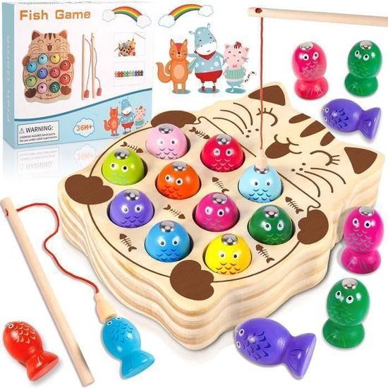 Chaque poisson a une lettre différente sur le dos, ce qui permet aux enfants d’apprendre à épeler les lettres de manière ludique. Jouet D'apprentissage Poissons Jeu De Pêche Magnétique En Bois Jeu De Pôles à Poisson Enfants Jouets Educatifs Jouet De Peche Jeu Coordination œil-main Enfant Description du produit Spécifications Matériau : Bois Couleur : Multicolore Motif : Créatures marines Le forfait comprend : 31 x jeu de pêche magnétique jouet en bois 2 x pêche Amusez-vous Le design coloré et les motifs mignons attirent l’attention des enfants. Jeux Gratuit Pour Fille De 5 Ans 🐟 【Jeu De Pêche Magnétique Peche】 Le jouet de pêche magnétique en bois est fabriqué en bois poli, non toxique et sûr, avec des bords et des surfaces lisses pour les enfants. 🐟 【Jouets Éducatifs De Poisson En Bois】Nos jeux de pêche en bois offrent une variété d’options de jeu et sont un excellent moyen pour les parents et les enfants d’interagir les uns avec les autres. Jeu d39échecs en bois multifonctionnel pour enfants jeu de société... Avertissement De Sûreté NO Un apprentissage sans frustration aide à développer la pensée spatiale et à s’amuser en même temps. Les enfants peuvent rivaliser avec leurs parents pour voir qui peut attraper le plus de poissons. RUIDA Jeu de Magnetique Pêche Puzzle en Bois Jeux Société Poissons Cadeau idéal pour les enfants Ce jeu de pêche est le meilleur choix pour les cadeaux de Noël / cadeaux d’anniversaire pour les garçons, les filles, les étudiants et les enfants ! 🎣 【Jouet De Canne À Pêche En Bois】 Ce jeu de pêche contient 31 jouets de pêche magnétiques et 2 cannes à pêche.