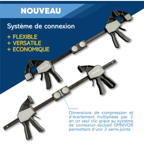 WORKPRO Jeu de Serre-joints Métallique à Libération Rapide pour une Accessoire Atelier Bricolage Serrage Sans Outil 1 Pièces Jeu De Serre-joints Métallique à Libération Rapide, Largeur De Serrage 50 Mm Pour Travail Du Bois Des Metaux Et Diy 98604167 Pince Couture Structure fiable]Le corps de serre joint métallique en acier renforcé, le matériel de qualité qui assure une grande résistance aux chocs. Elles peuvent non seulement résister à l'utilisation intensive du chantier de construction, mais également s'assurent que chaque utilisation est plus sécuritaire et durable[Forte puissance de serrage]serre joint fournit un bon choix pour le... ☑️ 𝐂𝐨𝐧𝐜̧𝐮𝐞 𝐩𝐨𝐮𝐫 𝐥𝐞𝐬 𝐫𝐚𝐢𝐥𝐬 𝐁𝐨𝐬𝐜𝐡 - Compatibilité parfaite avec les modèles FSN 800, 1100, 1600 et RA 32-800 – pour une fixation rapide, stable et sans jeu. EN STOCK : WORKPRO Jeu de Serre-joints Métallique à Libération Rapide 2 Pièces, Largeur de Serrage 300 mm, Force de Serrage Maximale de 272 kg pour Travail... ☑️ 𝐑𝐄𝐌𝐁𝐎𝐔𝐑𝐒𝐄́ 𝟔𝟎 𝐉𝐎𝐔𝐑𝐒 - Pour te faciliter la décision d'achat, nous prenons le risque et te faisons notre promesse : Si, pour une raison quelconque, tu n'es pas satisfait(e) de notre rail d'alimentation, nous te remboursons - jusqu'à 60 jours après l'achat! ☑️ 𝐅𝐨𝐫𝐜𝐞 𝐝𝐞 𝐬𝐞𝐫𝐫𝐚𝐠𝐞 𝐩𝐮𝐢𝐬𝐬𝐚𝐧𝐭𝐞 𝐝𝐞 𝟔𝟖 𝐤𝐠 - Une pression fiable pour maintenir le rail de guidage en position, même sur des matériaux exigeants comme le bois dur ou le contreplaqué.