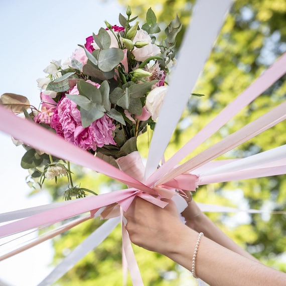 Jeu des rubans | SUR MESURE | LA BOÎTE À RUBANS Couleur de Mariage Classique]Le jeu du ruban mariage bouquet propose 6 couleurs par jeu, offrant un choix varié de numéros de couleurs de mariage classiques... Deco Mariage Ronde Des Rubans Sur Anneau - Jeu Du Bouquet De La Mariée Bouquet Mariée 【Design Romantique】Ruban bouquet mariage comprend tout ce dont vous avez besoin, aucune préparation supplémentaire n'est requise, les rubans et les anneaux en bois sont spécialement conçus pour jeux du ruban bouquet mariée, ajoutant élégance et romantisme à votre mariage. Ce jeu apporte plus de rires, de chaleur et d'interaction. Ces rubans peuvent être attachés à des bâtonnets, des piquets ou des supports en bois, ce qui permet de les disposer facilement dans un lieu de célébration. En... 【Sens de La Cérémonie Amélioré】Dites adieu au traditionnel lancer de bouquet. 【Satin Brillant】Matériau satiné ruban mariage, spécialement conçu pour une séance de jeu romantique jeu de ruban mariage. Le ruban mesure 3 m de long et 2,5 cm de large, ce qui convient aux décorations de mariage et de fête. 【Couleur de Mariage Classique】Le jeu du ruban mariage bouquet propose 6 couleurs par jeu, offrant un choix varié de numéros de couleurs de mariage classiques, parfaits pour différents thèmes de mariage et bouquets de mariée.