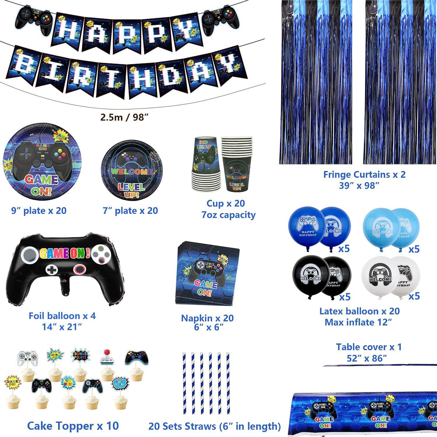 Décoration Anniversaire Niveaux De Jeu Vidéo Des Jeux D'anniversaire De Fête Et Décorations – Party Expert Nappe Banderole Ballons Aluminium Latex L'évolution des jeux vidéo : des pixels aux mondes ouverts Une étude montre que les jeux vidéo développent les performances... La banderole « Joyeux anniversaire » est en carton de haute qualité. Profitez de l'ambiance festive et joyeuse que les ballons apportent ! 【Gain De Temps】Ce kit de fête d'anniversaire est très complet et comprend la plupart des articles nécessaires pour une fête à thème. Ce kit de décoration d'anniversaire comprend 1 nappe, 1 banderole, 6 décorations tourbillonnantes, 3 ballons en aluminium à l'effigie de personnages, 18 ballons en latex imprimés, 1 grande décoration pour gâteau et 24 décorations pour cupcakes Vous n'aurez plus besoin de perdre du temps et de l'énergie à chercher d'autres articles. 【Occasions D'utilisation】Ces décorations conviennent non seulement aux anniversaires, mais aussi aux fêtes à thème, aux fêtes d'enfants et à toutes autres occasions spéciales. Pour toute question, n'hésitez pas à nous contacter. Gaming : Quelle école de jeux vidéo choisir