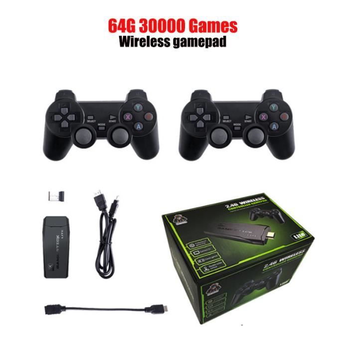 Contrôleur 64G - Console de jeu rétro M8,2.4 Go, double manette sans Vous permet de profiter facilement de jeux vidéo animés et intéressants sur grand écran. Fonctionnement simple : il suffit de connecter la clé à l'alimentation, de la brancher sur le téléviseur et de passer au canal HD. Clé de jeu rétro 4K - 64 Go - Livré avec plus de 20 000 jeux... Console Plug And Play Pour TV 64G GD20 - Console De Jeu Vidéo Rétro M8 Plus, Manette Sans Fil, 2.4G Plug And Play TV Sortie HDMI haute définition : il suffit de le brancher et de l'utiliser. Vous permet de profiter facilement de jeux vidéo animés et intéressants sur grand écran. 64G M8 Plus - Manette sans fil pour console de jeu vidéo,40000 jeux... Les écrans TV 4K seront plus clairs. Aucune installation ou installation compliquée n'est nécessaire. En tant que tel, il pourrait faire un excellent cadeau pour diverses occasions, telles que les anniversaires et les vacances Double manettes sans fil : équipée de 2 manettes sans fil pour une connexion transparente à la console de jeu vidéo rétro ; pas de câbles, pas de limites, juste plus de plaisir La compatibilité améliorée avec plus de téléviseurs garantit de meilleures expériences de jeu à partager avec vos amis et votre famille