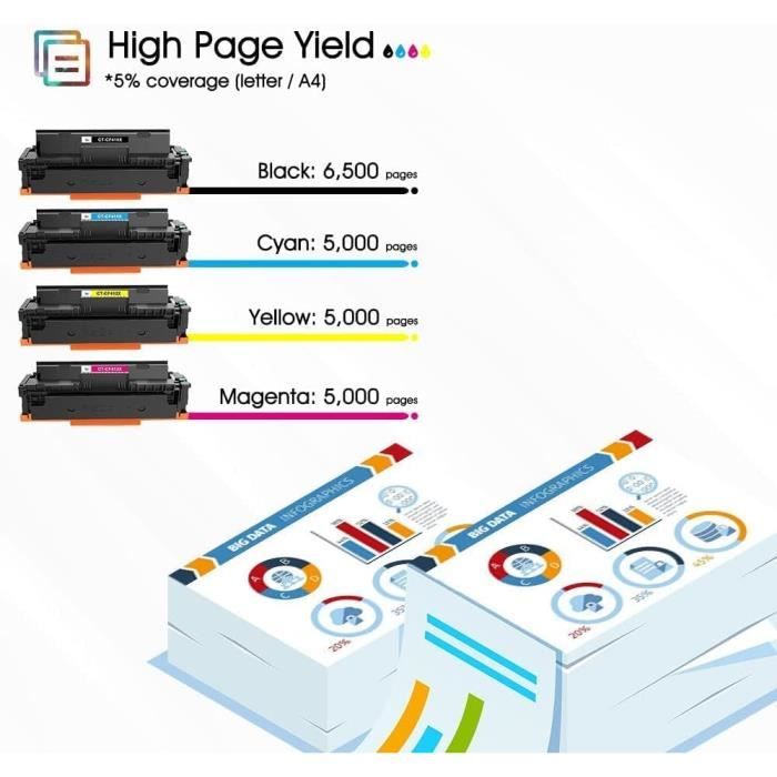 Toner Pour HP LaserJet Pro M477 M452 Jhaan Lot De 4 Toners Compatibles Avec HP 410X CF410X CF410A Pour Toner Couleur Laserjet Pro TRUE IAGE Cartouche de Toner Copatible pour HP 410A 410X CF410A Contenu de la livraison : lot de 5 toners 410X, 2 cartouches 410X CF410X noires, 1 cartouche 410X CF411X cyan, 1 cartouche 410X CF412X jaune, 1 cartouche 410X CF413X magenta Nom du produit : toner 410X compatible avec HP MFP M477fdw Toner pour HP 410X CF410X CF411X CF412X CF413X (410A CF410A CF411A CF412A CF413A) (non original) COMETE, Marque Française - 410X - 1 Cartouche De Toner Compatible HP 410X CF410X (410A CF410A) - Pour HP Color Laserjet MFP M477fdw M477fdn M477fnw M452dw... Rendement : 410X est une version de la cartouche de toner haute capacité (6 500 pages Pro 410X CF410X toner noir, 5 000 pages Pro CF411X CF412X CF413X toner couleur à 5 % de couverture sur A4 ou lettre) Économisez plus - Les cartouches de toner Jhaan vous offrent une bonne expérience d'impression à un prix raisonnable. Spécifications: Modèle : cartouches de toner compatibles HP 410X CF410A CF411A CF412A CF413A Imprimantes compatibles : HP Color Laserjet Pro MFP M477 M477fdw M477fdn M477fnw M377dw M452 M452dn M452nw M452dw Contenu : Lot de 5 toners 410X, 1 cartouche 410X CF410X noire, 1 cartouche 410X CF411X cyan, 1 cartouche 410X CF412X jaune, 1 cartouche 410X CF413X magenta Spécifications: Imprimer plus - Une cartouche de toner noire peut imprimer environ 6 500 pages et des pages par cartouche de toner couleur à 5 % de couverture A4., Notre toner compatible HP 410A 410X avec la dernière puce s'adapte à plus d'imprimantes.
