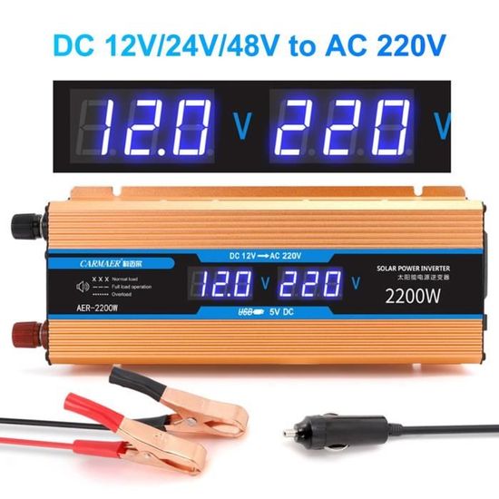 Transformateur / Convertisseur de tension 1500W 12V-230V Convertisseur Tension Voiture Camping-car Joemnwart Onduleur à Onde Sinusoïdale Pure 1000W, Convertisseur 12V Samsung Galaxy S22 En connectant l'investisseur à la batterie, il peut convertir 12V CC en 220V/230V CA à 50Hz. 1500W 12V 200AH 1h 10min. Par exemple, pour un réfrigérateur de... 【ÉQUIPEMENT ET PARAMÈTRES】 : 2 prises AC, 1 USB-A, 1 USB-C. Cikonielf Onduleur à onde sinusoïdale modifiée Onduleur de Voiture à... 【VENTILATEUR INTELLIGENT】 : L'onduleur est équipé d'un ventilateur intelligent qui s'active automatiquement lorsque l'appareil atteint une certaine température afin de le refroidir. 【MATÉRIAU DE HAUTE QUALITÉ】 : Nous utilisons un boîtier en alliage d'aluminium, qui est non seulement robuste et durable, mais offre également une meilleure dissipation thermique que d'autres matériaux.