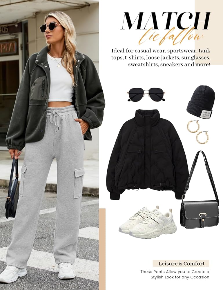 【Occasions 】:Pantalon femme chic et elegant avec poches sont idéaux pour le quotidien,pantalons de détente,course,ski,travail,fitness,yoga et d'autres activités de plein air. Conception de pantalon cargo,six poches pratiques,doublure épaisse en sherpa,jambe droite et taille élastique avec cordon de serrage intérieur. Pantalon Sport Femme Hiver Taille élastique PASUDA Pantalon Polaire Jogging Femme Hiver Chaud Pantalons Pantalon Velours Femme Conçu en coton, il est doux et respirant, idéal pour le sport ou les moments de détente. Sa coupe cargo ajoute une touche tendance tout en étant pratique avec... Vous vous sentirez à l'aise en portant notre pantalon en hiver toute la journée. PASUDA Pantalon Chaud Jogging Femme Hiver Pantalons de Sport Coton 【Design】:Notre pantalon polaire femme thermique est élégant et pratique. Veuillez laver le pantalon cargo pour femme. Notre survêtement pour femme Les bas sont amples mais pas trop amples. PASUDA Longue Sweatpants Large avec Multiples Poches 【Taille et Couleurs】 :Pantalon thermique femme a quatre tailles (S M,L,XL) au choix. Super chaud et agréable à porter en hiver. Le pantalon polaire jogging PASUDA pour femme est parfait pour les journées froides, offrant une isolation optimale grâce à sa doublure en polaire. Conçu en coton, il est doux et respirant, idéal pour le sport ou les moments de détente Ces bas de jogging hiver sont un article de mode incontournable et plus chaud dans votre garde-robe. Cinq couleurs classiques (Noir,Gris Foncé,Gris Clair,Marine,Blanc) sont disponibles. PASUDA Pantalon Mode Polaire Hiver Chaud Pantalons de Sport Coton PASUDA Pantalon Jogging Femme Pantalon Polaire Hiver Automne Chaud de