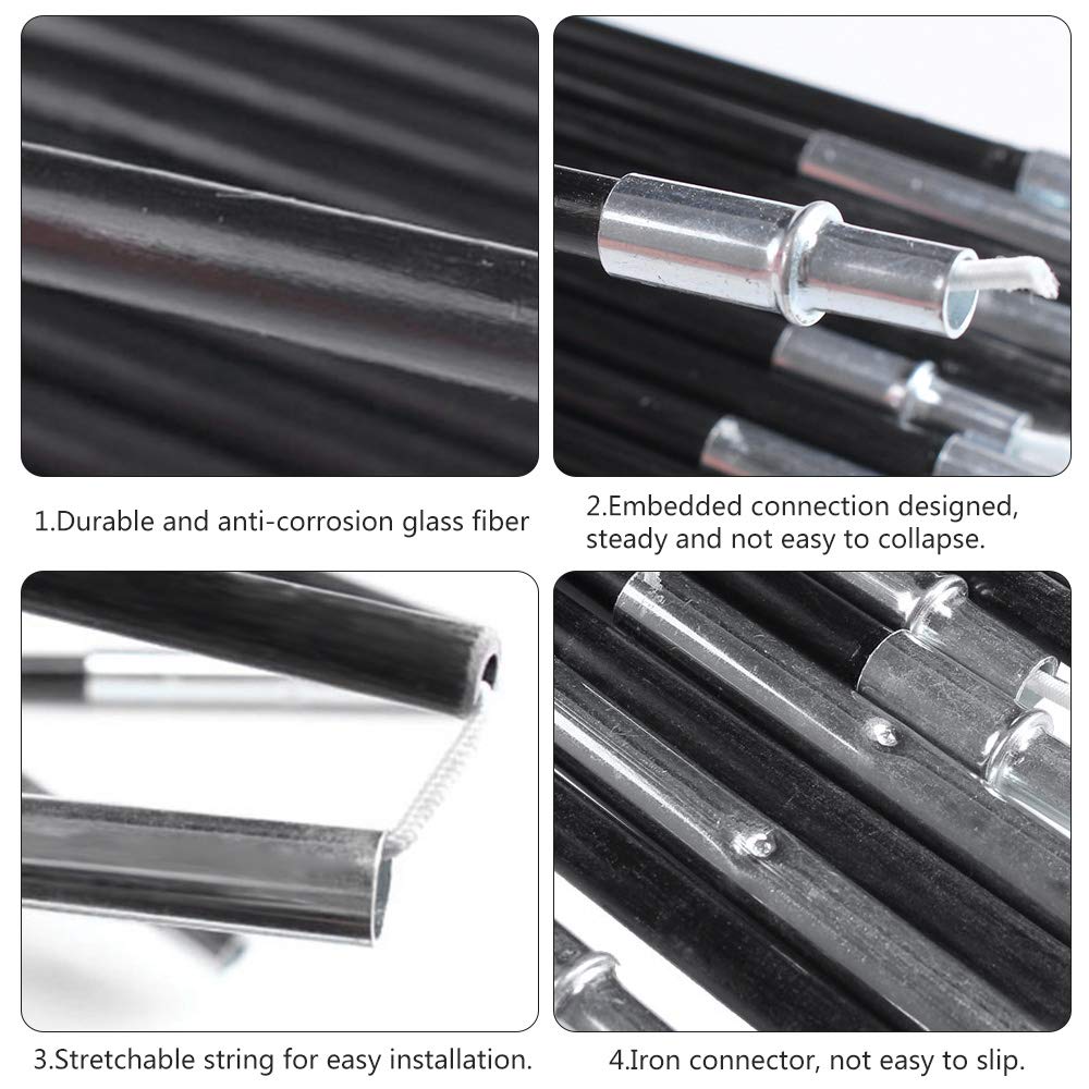 Contenu du paquet : 1 paire de barres de tente. Longueur de la tige : 3,1 m, 3,4 m, 3,9 m, 4,35 m, 4,75 m (en option). Tiges Tente élastiques Longueur Réglable Jonikuper Poteaux De Rechange En Fibre De Verre Pour Tente Poteaux Tente Fibre De Verre Légers, résistants et flexibles, ils permettent de maintenir la structure de la tente en place, assurant ainsi sa stabilité et sa solidité. Que vous soyez un... Tente adaptée : 1 personne/double personne/3-4 personnes/6 personnes/8 personnes. Description : * Une paire de piquets de tente de rechange. Caractéristiques : Matériau : fibre de verre. Léger et portable : les sections pliables se replient à une taille compacte (53,4 cm à 60 cm par section) pour un transport pratique. Diamètre : 6,9 mm/6,9 mm/6,9 mm/7,9 mm/7,9 mm., Sections : 6/6/7/8/9., Longueur de chaque section : 53,4 cm/59,5 cm/60 cm/58,5 cm/57,5 cm. * Mât en fibre de verre, anti-corrosion, pas facile à casser. Construction robuste : fabriqué en fibre de verre durable qui résiste aux dommages et aux éléments extérieurs. * Design simple, facile à monter et à démonter. Robuste : fabriqué à partir de fibre de verre haute dureté, le poteau de rechange assure une excellente durabilité et robustesse pour une utilisation... Poids approximatif : 400 g/430 g/520 g/760 g/830 g. Les pièces sectionnelles se connectent facilement, ce qui rend l'installation simple pour les campeurs de tous niveaux d'expérience. * Cordon extensible à l'intérieur pour connecter chaque pièce de la tige. Tendalino parasole da esterno a cassetta per tenda a baldacchino retrattile tend