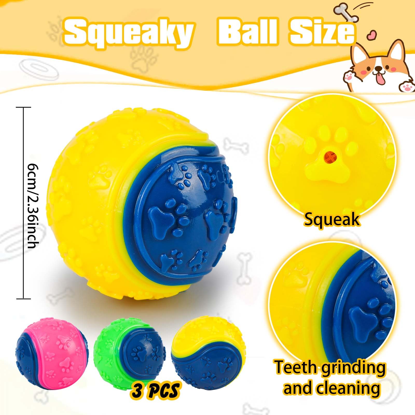 Design sûr et adapté aux chiots : fabriqué avec du caoutchouc sans danger pour les animaux de compagnie qui est doux pour les dents et les gencives. Jouet Couineur Pour Chien en Peluche Interactif - Marque - Modèle... Description du produit Balles pour chien, conçues pour encourager le jeu interactif et satisfaire les instincts de mastication, offrir des expériences stimulantes, apaiser les animaux de compagnie pendant l'entraînement ou le jeu, que ce soit dans la cour, au parc ou lors d'une journée ensoleillée à la plage. Balle couinante durable pour chien, jouet amusant pour chien, chiot, dentition à mâcher En raison de la différence de mesure manuelle, veuillez permettre une différence de 1 à 3 cm., Mode d'emploi 0 Jouet apaisant pour le stress : conçue pour apaiser et réduire les comportements destructeurs, cette balle à mâcher est parfaite pour les chiens laissés seuls à la maison ou lors d'événements stressants comme les voyages, les bruits forts ou les environnements inconnus. Balle Caoutchouc Pour Chiot Jouets Pour Chiens à Mâcher Agressifs, Jouets De Dentition Pour Chiots, Jouets à Mâcher Agressifs | Balle De Divertissement Pour Intérieur Et Extérieur Pour Chiens De Petite Et Moyenne Taille Qui Balle Robuste Pour Mâcheurs Agressifs Liste des produits : 1 balle pour chien. Durable, apaisant et sûr pour une utilisation en intérieur ou en extérieur, il fournit un entraînement interactif, l'ennui et le plaisir pour les chiens à la maison, au parc ou à la plage. Polyvalente pour tous les environnements : idéale pour aller chercher dans la cour, chasser sur la plage, tirer dans le parc ou jouer en solo dans la maison. La texture favorise également la santé en aidant à masser les gencives et à nettoyer les dents pendant la mastication. Matériau : caoutchouc thermoplastique., Poids : 45 g. Cette balle légère se déplace facilement et apporte joie et énergie aux chiens de tous âges et tailles.