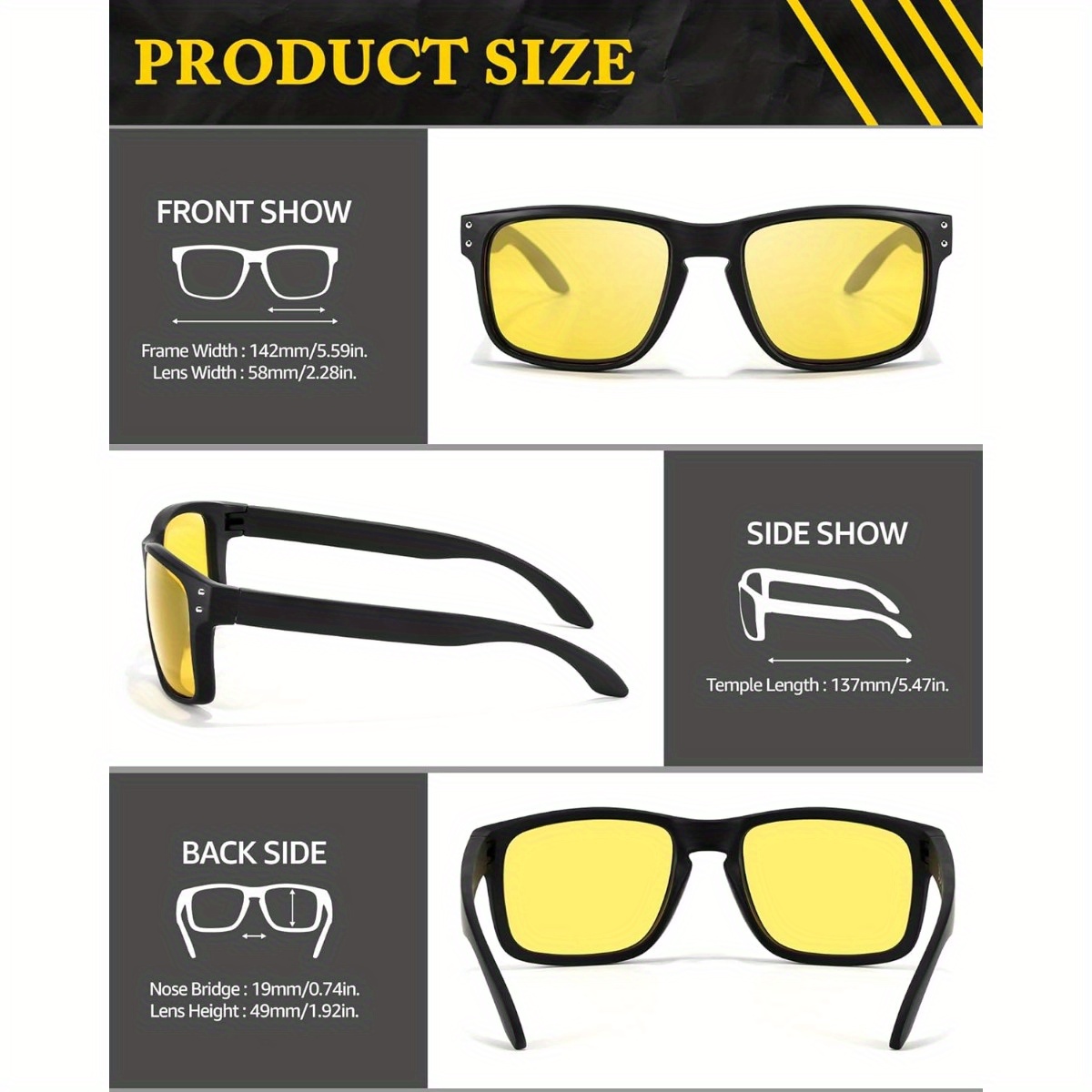 Lunettes Légères TR90 Lunettes Conduite De Jour Et De Nuit, Lunettes De Vision Nocturne Polarisées, Anti-Reflet Lunettes Sécurité Faible Luminosité Boolavard Lunettes de Conduite de Nuit | Protection UV400 Lunettes De Soleil Polarisées De Mode Pour Hommes Femmes Over Glasses Surlunettes De Soleil Avec... Conçu pour durer : robuste, anti-rayures et résistant aux chocs pour une durabilité exceptionnelle. Améliorez votre expérience de conduite de nuit : les lunettes de conduite de nuit peuvent être portées fermement sur votre visage, avec nos lunettes de vision nocturne pour la conduite, vous serez en mesure de voir clairement la route dans des conditions de faible luminosité. Dites adieu à l'éblouissement et bonjour à une conduite plus sûre et plus confortable. Design élégant : look et sensation agréable derrière le volant avec un design moderne et élégant. Légères et durables : monture durable et incassable, verres TAC anti-rayures et incassables, ces lunettes de conduite de nuit sont ultra légères et durables. Robuste, anti-rayures et résistant aux chocs pour une longue durée de vie. Nombreuses utilisations : les lunettes anti-reflet offrent une plus grande clarté et contraste dans le brouillard, le nuage, la pluie, l'obscurité et d'autres conditions de faible luminosité, améliorent les performances de vision nocturne, le choix idéal pour la conduite de nuit, la moto, le vélo, la course, la marche, la pêche et d'autres activités de plein air. Porte Des Lunettes Pour Hommes Femmes - Lunettes De Vue Wrap Around/Conduite/Anti-Reflets...