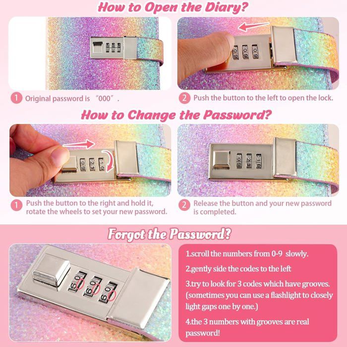 Carnet de notes avec serrure : ce carnet créatif verrouillable pour fille protège en toute sécurité les secrets et les idées d'une fille. Carnet Secret Licorne - WOODOURS - Peluche - A5 - Multicolore - Cadeau Filles 6 ... Journal intime avec serrure, peluche licorne, 160 pages A5, cadeau pour... Le papier est également assez épais pour éviter les marques ou impressions indésirables de l'autre côté de la page. -- Que ce soit pour un anniversaire, Noël, diplôme ou toute occasion spéciale, ce journal est un excellent cadeau pour tous ceux qui aiment écrire ou garder leurs pensées organisées. Cadeau Fille 15 Ans Journal Intime Avec Cadenas MOJINO Cadeau Fille 7 8 9 10 11 12 Ans Coffret Journal Et Accessoires Format papier A5 avec un espacement des lignes de 8,6 x 5,9 pouces. Contenu de l'emballage : 1 journal intime avec cadenas (180 pages). Aucune clé n'est nécessaire, combinaison à 3 chiffres de 0 à 9 chiffres, des milliers de combinaisons de mots de passe, mais un seul mot de passe correct. Un cadeau parfait : parfait comme cadeau de rentrée scolaire, cadeau de fête des enfants, cadeau d'anniversaire, cadeau de Noël, cadeau de Nouvel An, cadeau de Pâques, cadeau de remise de diplôme, récompenses, etc. C'est un cadeau unique et inimitable pour les filles, les filles, les petites-filles, les nièces ou les amis. -- Qu'il s'agisse de secrets d'affaires, de vie privée personnelle ou de pensées que vous ne voulez pas que les autres les connaissent, ils peuvent être entièrement protégés. Journal intime avec code pour fille : une boîte cadeau magnifiquement conçue, comprend : 1 journal intime avec cadenas, 1 stylo à bille en métal, 1 trousse, 1 bracelet, 1 marque-page à plumes. Ce journal intime a un cadenas à code pour garder les secrets bien cachés. Le set inclut aussi une trousse, un stylo, un bracelet et des autocollants pour... -- Ce journal intime avec serrure à mot de passe créatif est un endroit sûr où les filles peuvent exprimer librement leurs pensées, leurs sentiments et leurs rêves. Si vous avez des questions ou avez oublié votre mot de passe, vous pouvez vous référer aux instructions ou nous contacter. Carnet Secret Fille Avec Code Journal Intime Avec Cadenas - Cadeau