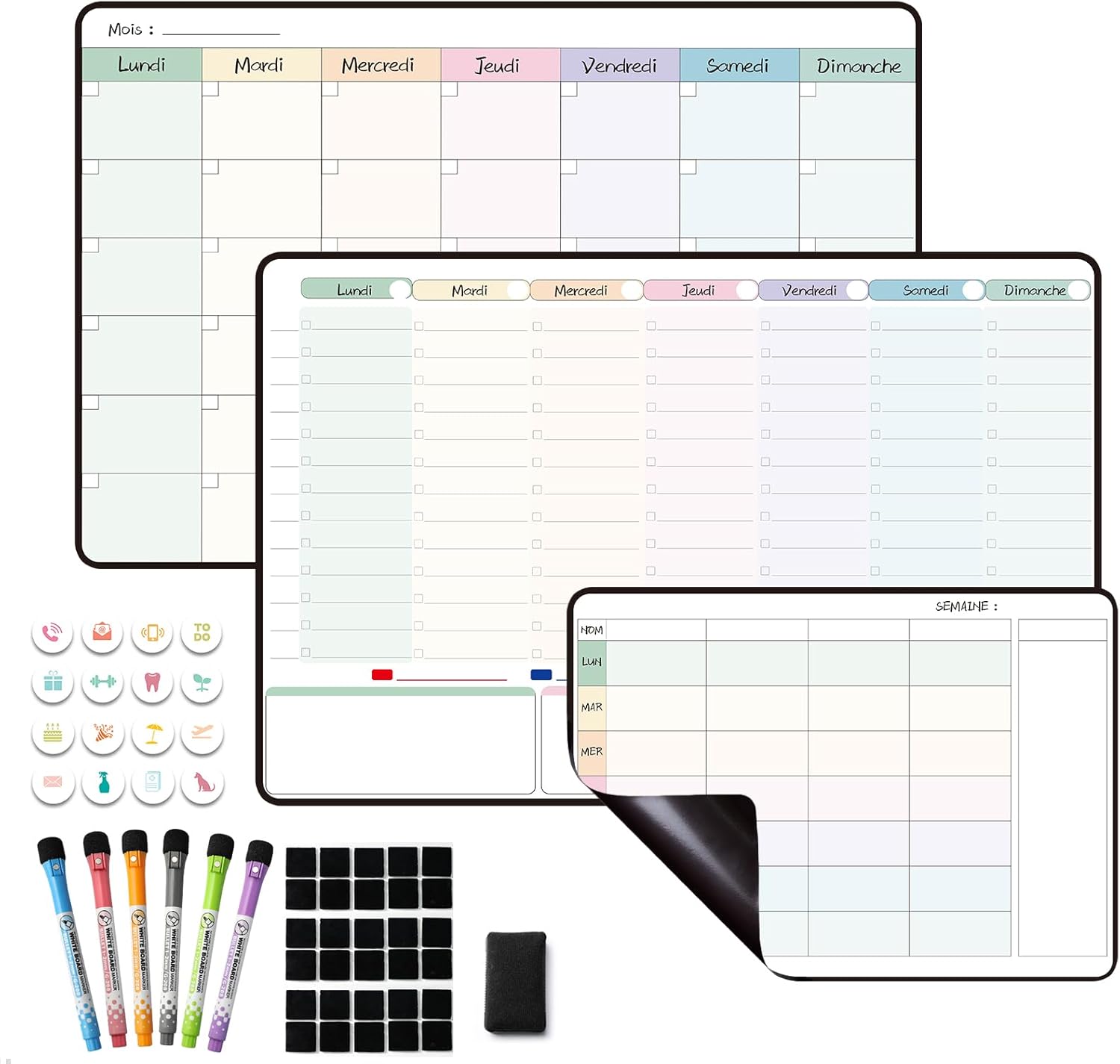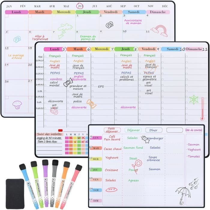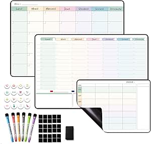 Nos 10 Meilleurs Emploi Du Temps Frigo pour 2025 [FR Planning Semaine Planning Journalier,,Emploi Du Temps,avec Calendrier Magnetique Frigo Accédez au classement des meilleurs emploi du temps magnétique de novembre 2025, qui repose sur le nombre de ventes, d'avis et la note moyenne reçus par chacun des produits qui le composent 【Multifonctionnel】Ce calendrier quotidien fournit de brèves informations sur tous les rendez-vous de la journée et peut être utilisé comme planificateur de cuisine/liste de choses à faire/planificateur de repas/planificateur familial, ainsi que comme bloc-notes pour les achats quotidiens. POPRUN Planning Seaine agnetique eploi du teps,Seainier... 【Tip】Si le réfrigérateur est en acier inoxydable (non magnétique), vous pouvez utiliser du ruban adhésif double face pour fixer le calendrier au réfrigérateur ou à un mur plat, à une porte en verre ou en bois. 【Magnétique】Le calendrier contient des particules magnétiques qui peuvent être fixées sur toute surface contenant du fer, comme les réfrigérateurs et les tableaux noirs.