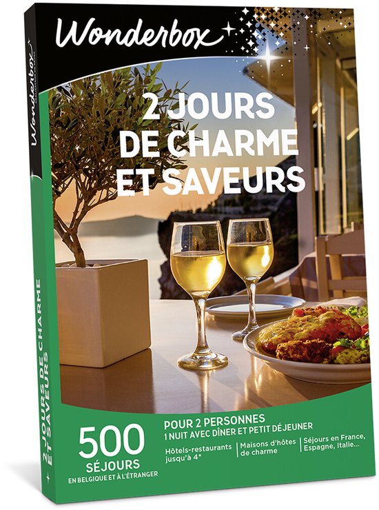 Box Cadeau Française Valable 3 Ans Coffret Cadeau - 3 Jours Week-end Bien-être - Coffrets Week-end Et Séjours Gift Card Coffrets cadeaux - Box à vendre sur SleepingMoney Wonderbox - Coffret cadeau en couple - Week-end bien-être - 800 séjours... ✅ OFFREZ UN COFFRET CADEAU WEEK-END COCOONING: 1 à 2 nuit(s) avec ou sans petit déjeuner, avec ou sans dîner, avec ou sans activité bien-être pour 2 personnes Hôtel 3* ou 4*, château, manoir, maison d'hôtes, cabane., ., ., Réservation en ligne sur une sélection d'hôtels ✅ UN COFFRET CADEAU, COMMENT ÇA MARCHE ? 1., Choisissez le coffret cadeau qui fera plaisir - 2., Les heureux élus sélectionnent l’expérience qui leurs fera plaisir et la réserve auprès du partenaire – 3., Il ne leurs reste plus qu’à profiter pleinement et de remettre le chèque cadeau au partenaire. Vous avez tout le temps de profiter de votre cadeaux! hero-video Vidéo de marchand Entreprise 100% française crée en 2004., 71000 expériences uniques. 93% de nos clients sont satisfaits. Une garantie perte et vol. Le luxe de réserver quand on veut, sans stress. LE CADEAU QUI TAPE DANS LE MILLE : Ce coffret plaît à tous les coups. Anniversaire, mariage, fête… visez juste à chaque occasion ! LA CONFIANCE WONDERBOX