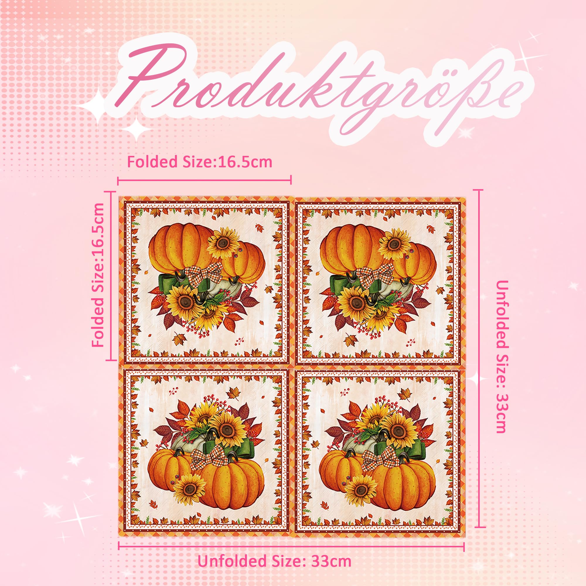 Serviettes 33x33 Cm Lets Joy Serviette Automne, 100 Pièces Serviette Citrouille Décoration Table Saisonnière Serviettes d'automne : contient 60 serviettes du même design. Assez pour une grande fête. Il suffit de déballer et de décorer immédiatement Lot de 100 serviettes jetables pour l'automne, Thanksgiving Une Large Utilisation: Les sets de table décoratifs d'automne conviennent pour une utilisation lors de fêtes telles que Halloween, Thanksgiving, Noël, etc. Lot de 100 serviettes jetables en papier pour Thanksgiving - Motif feuilles d'automne - Pour invités - Pour la récolte d'automne, la maison, la cuisine, la... Donnez du style et de l'élégance à votre intérieur et vos invités seront ravis de ce design unique. Matériau: Les serviettes de Thanksgiving sont faites de matières premières respectueuses de l'environnement, Respectueux de l'environnement et doux et possèdent une bonne performance d'absorption d'eau, Vous pas facile à casser. Design Feuille D'érable: Design de feuilles, beau motif, Votre motif de parapluie de feuilles d'or vous transporte dans le monde magique des promenades d'automne, Parfait pour la saison d'automne. Spécification: Matériel: Papier Format Ouvert: 33x33CM Plié sur: 16., 5x16., 5CM Liste des Produits : 100 x Serviettes Automne