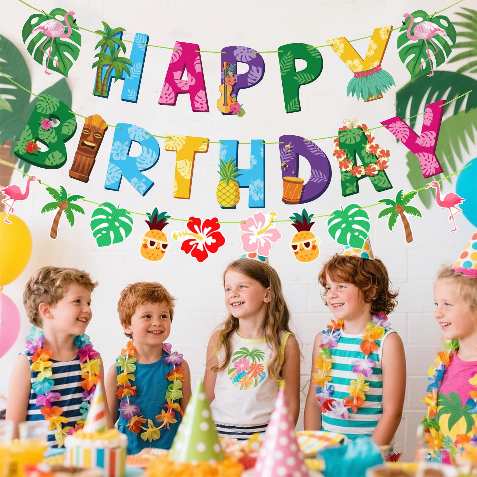 Fête Hawaïenne Décoration Anniversaire Thème Tropical - Bannière Complet Set]Vous recevez deux guirlande joyeux anniversaire avec lettres étoilées, une banderole thématique hawaïenne avec motifs vibrants et seize cartes décoratives pour sublimer votre dessert. Aloha - Lot de 81 vaisselle de fête hawaïenne - Décoration... Decoration Anniversaire Tropicale Banderole Joyeux Anniversaire Noir Et Or, Happy Birthday Banderole Guirlande Joyeux Anniversaire KASESSS Tropical Banderole Joyeux Anniversaire, Hawaïenne Decoration Anniversaire Kit, Happy Birthday Decoration, Joyeux Anniversaire Decoration, Guirlande Joyeux Anniversaire pour Filles Garçons Caractéristiques 1., Cette happy birthday decoration en papier épais présente des couleurs saturées qui résistent à la décoloration., 2., Une banderole joyeux anniversaire pratique qui économise du temps tout en sublimant votre événement., 3., La decoration anniversaire tropicale captive avec ses couleurs vives et ses motifs typiques de la culture hawaïenne. 【Complet Set】Vous recevez deux guirlande joyeux anniversaire avec lettres étoilées, une banderole thématique hawaïenne avec motifs vibrants et seize cartes décoratives pour sublimer votre dessert. Ce kit de déco tropicale hawaïenne contient 146 pièces : jupe de table en herbe synthétique, feuilles de palmier, fleurs, parapluies, pailles funky, ballons, et... Spécifications du produit Matériau :Papier Couleur :Coloré Taille :Comme indiqué dans l'image Le forfait comprend:1*Banderole Joyeux Anniversaire Les motifs tropicaux et les inscriptions joyeux anniversaire apportent une touche élégante et festive à toutes vos célébrations. Cette happy birthday decoration s'adapte aux événements enfants et adultes pour une atmosphère joyeuse et immersive. 【Durable et Réutilisable】Fabriqué en papier cartonné premium, cet ensemble de banderole joyeux anniversaire supporte une utilisation en intérieur et en extérieur.
