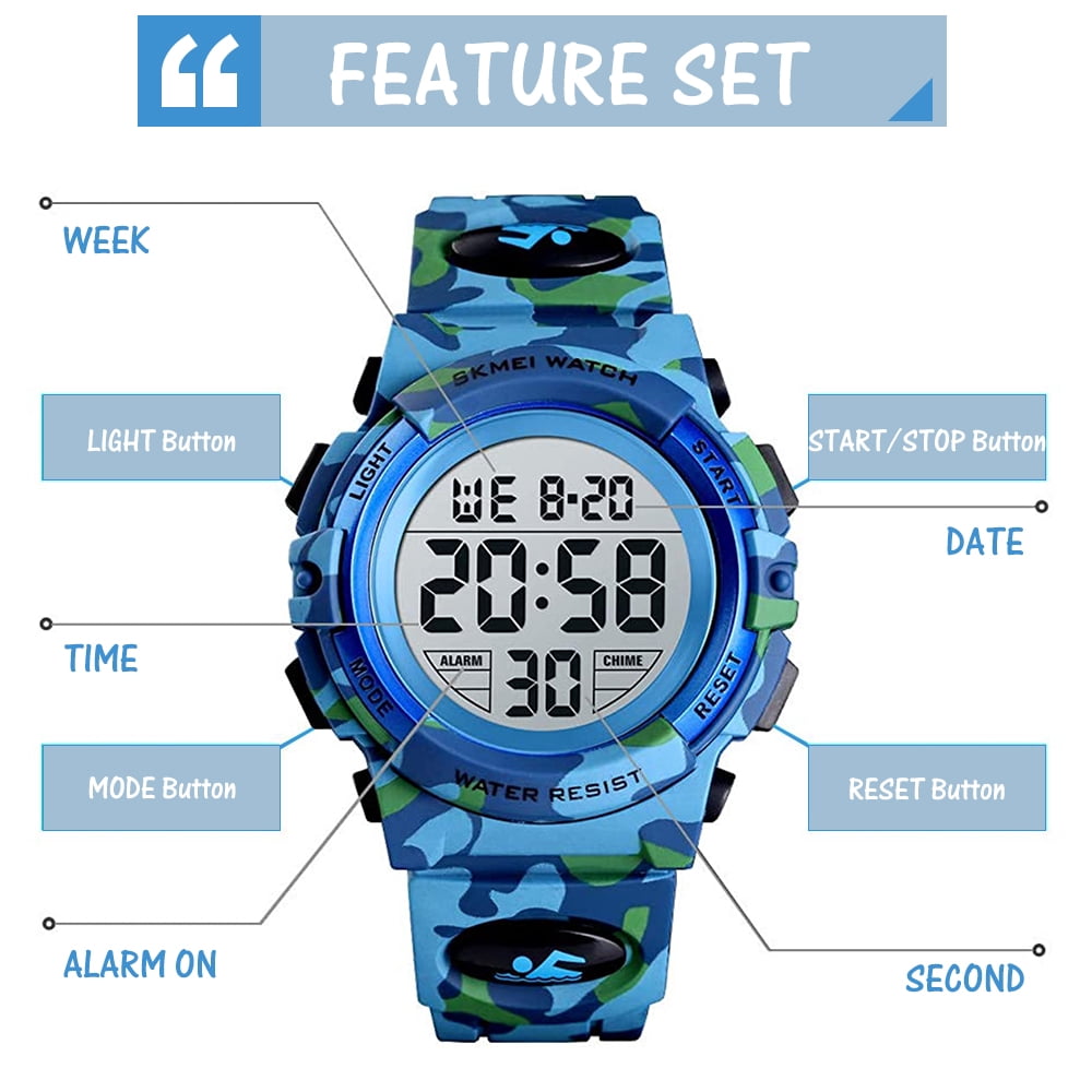 Montre étanche 30M Enfants Juboos Montre Enfant Avec Bracelet Imprimé Et 7 Lumières Colorées Montre Résine Acier Inoxydable Durable Juboos ontre nuérique pour enfants de 5 à 12 ans, étanche 3 AT Description du produit Juboos Montre Efant Nos montres pour enfants ont des mat riaux de haute qualit et des contr les de qualit stricts pour garantir des performances et une durabilit durables. L'aspect unique de la forme du chat avec le design imprim du bracelet les rend populaires aupr s des enfants et suscite leur int r t, ce qui en fait un excellent cadeau pour toutes les occasions. Lumi... Le boîtier en résine de haute qualité et le fond du boîtier en acier inoxydable protègent bien la montre contre les rayures, les chutes et les chocs. Circonférence maximale : 19,5 cm (7,67 pouces), circonférence minimale : 14,3 cm (5,6 pouces). 🎁【Un Cadeau Pratique】🎁 : La montre-bracelet enfants est emballée dans une boîte cadeau et on peut l'offrir directement, que ce soit pour un anniversaire, pour Noël, pour la rentrée scolaire, etc. 😺【Juboos Montre Efant 】🐰 : Nos montres pour enfants ont des matériaux de haute qualité et des contrôles de qualité stricts pour garantir des performances et une durabilité durables. Montre pour enfants pour garçons et filles de 4 à 12 ans. 💯【Service Après-Vente Exclusif】💯 : La satisfaction du client est notre plus grand objectif, nous fournissons à chaque client un service client exclusif. com, nous répondrons dans les 24 pour résoudre le problème pour vous. Plusieurs Couleurs: Ces Montres Pour Enfants Existent En 7 Couleurs Différentes Avec Lumière LED, Afin De Satisfaire Les Préférences Des Enfants. · Etanche