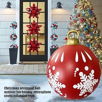 Boule gonflable décorée de noël en plein air, 30/45/65/75CM, avec Matériau de haute qualité et imperméable : nos boules décorées de Noël sont fabriquées en PVC imperméable à haute résistance, empêchant les déchirures et les... Grosse Boule De Noel Junerain Boule De Noël Gonflable Géante Avec Pompe à Air Boules Noël Gonflables Géantes PVC Remarque : En raison des différents effets de moniteur et de lumière, la couleur réelle de l'article peut être légèrement différente de la couleur affichée sur les images., Merci ! Le forfait comprend : 1 x boule de Noël gonflable Taille Géante]Boule de Noël gonflable géante taille pré-gonflée : 60 cm, diamètre entièrement gonflé 58 cm, hauteur 70 cm (poignée incluse) Assez grand pour attirer l'attention des gens à distance. Ce boule de Noël gonflable n'est pas livré avec des lumières, vous pouvez donc le décorer avec les lumières. 🎄[Conception D'apparence Exquise]Les ornements gonflables... Veuillez permettre un écart de mesure de 1 à 2 cm en raison d'une mesure manuelle. Taille adaptée pour une décoration polyvalente : ces ballons gonflables sont disponibles dans une taille parfaite pour décorer les cours, les jardins, l'intérieur et l'extérieur. Accrocheur et festif : la fonction illuminée de ces jouets gonflables les rend accrocheurs et ajoute une atmosphère festive à votre environnement. Plusieurs tailles et couleurs vives : avec une variété de tailles disponibles et de couleurs vives, ces boules gonflables ajoutent une touche colorée à vos festivités de vacances.