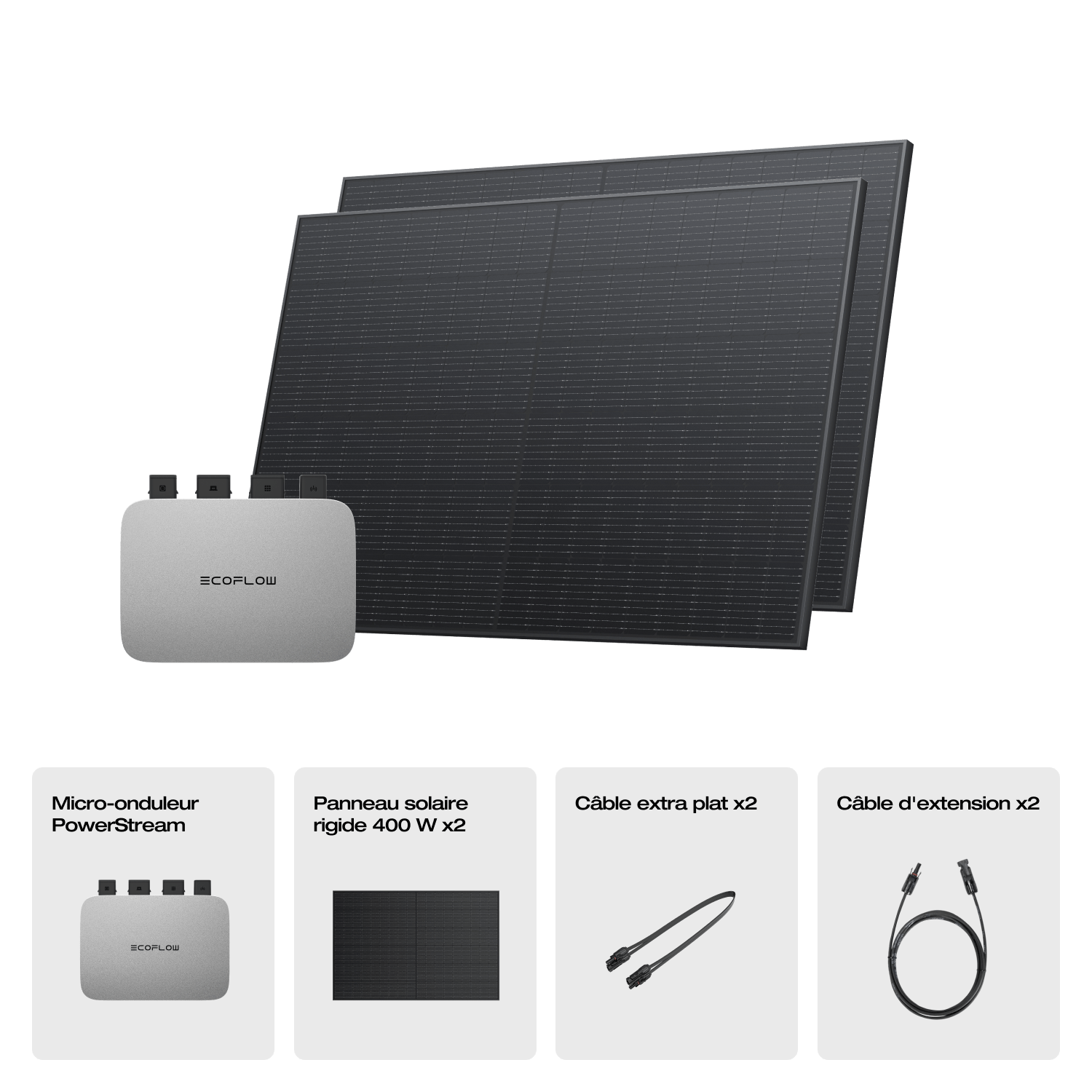 Passez à l'énergie solaire avec le Panneau Solaire Bifacial ECOFLOW 520W. Obtenez un rendement exceptionnel de 24,8% grâce à sa conception bifaciale (capte... EcoFlow - Panneaux solaires monocristallins 520 W (2 pièces) rigides Art. EFSolar/520W/R Tension de sortie Vmpp: 40.1 V, tension en circuit ouvert: 47.0 V Courant 2 x 520 Wp Dimensions 2’094 x 1’134 x 30mm, poids à 24.6 kg Protection IP68 ... conditionnement: 1 Panneau Solaire Compatible Jusqu'à 1000€ D'économie Sur Les Batteries Et Panneaux Solaires Ecoflow Ecoflow Panneau Solaire Kit EcoFlow STREAM Ultra + STREAM AC Pro + 4x Painel Solar de 520W
