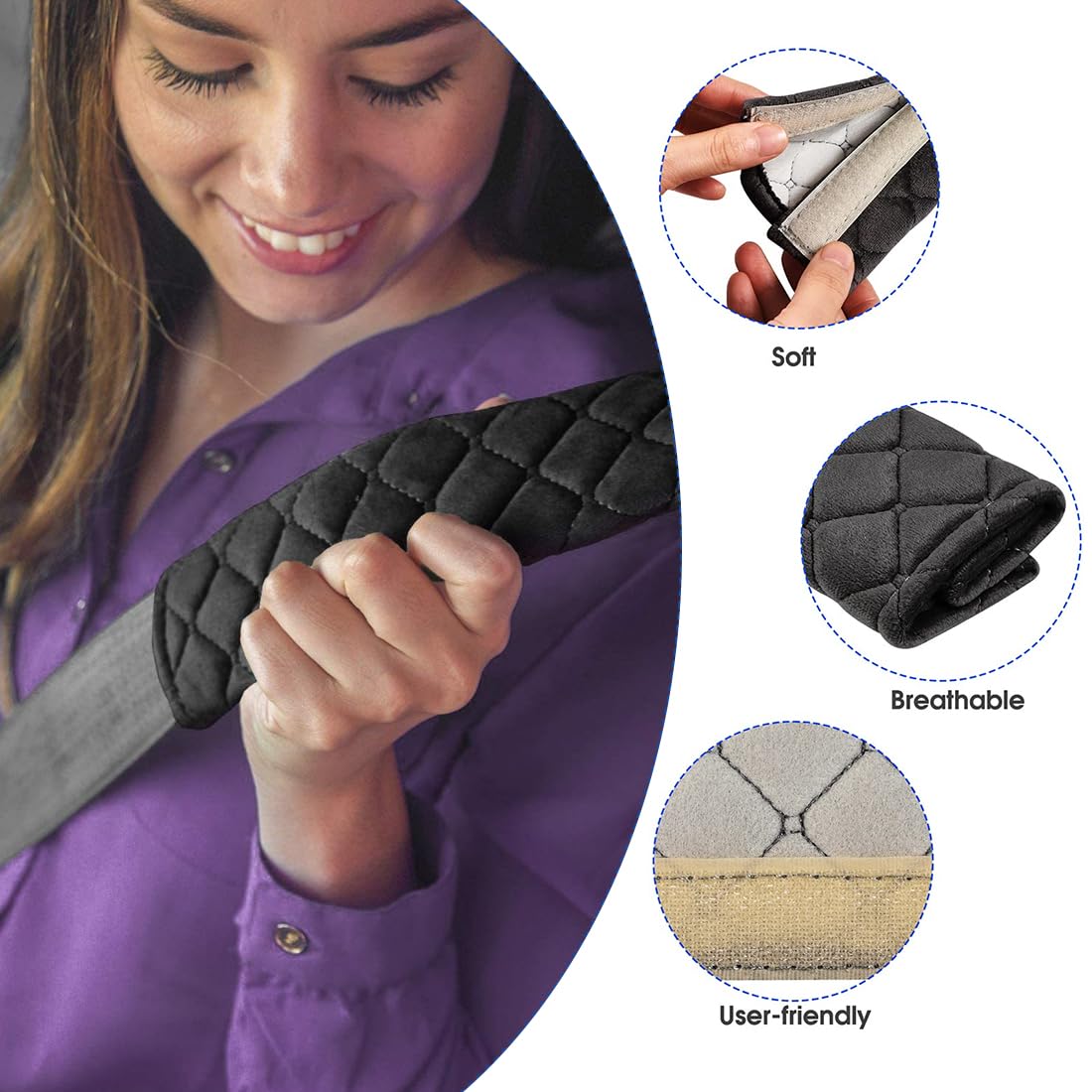 KAIAIWLUO Coussin Ceinture de Sécurité,2 Pack Peluche Ceinture de Sécurité Voiture Protection Epaule pour Adultes et Enfants pour Voiture Ceinture de Sécurité Sac à Dos à Bandoulière Noir : : Auto et MotoDurable: fabriqué dans une matière douce et respirante, procurant l'expérience de conduite la plus confortable et la plus abordable Sécurité Durable: fabriqué dans une matière douce et respirante, procurant l'expérience de conduite la plus confortable et la plus abordable Facile à Utiliser: pas besoin d'outils, enroulez-les simplement autour de la sangle de la ceinture de sécurité, commencez par serrer votre ceinture, puis glissez-la dans la position qui vous convient le mieux. Accessoire Auto Confort Conduite Juste De Ceinture De Sécurité En Velours Pour Camion, Coussin De Coussin Peluche Voiture Universel Rembourré pour un maximum de confort, idéal pour protéger la peau contre les irritations causées par le frottement de la ceinture de sécurité Inclure le package 2 x Coussin Ceinture de Sécurité Il permet de voyager confortablement en protégeant l'épaule et le cou d'un adulte ou d'un enfant du contact avec la ceinture de sécurité. Le protège ceinture conçu en matière velours est très doux. Se fixe très facilement par bande scratch Rmeet 2 Pack Peluche Ceinture de Sécurité Voiture Protection Epaule pour Adultes et Enfants pour Voiture Ceinture de Sécurité Sac à Dos à Bandoulière Noir Spécification Nom du Produit: Ceinture de Sécurité Voiture Matériel: peluche Style: brodé Couleur: noir/Gris Taille: 6 × 26cm Emballage: sac en PVC Caractère Les coussinets de ceinture de sécurité sont amovibles, très faciles à nettoyer et de forme universelle, conçus pour tous les types de voiture et les sièges auto. Rembourrage De Ceinture De Sécurité,2 Pièces Voiture Ceinture De Securitecoussin Ceinture De Securite Amovibleauto Confort Padspour Adultes Et Enfants Proteger Epaules 65x23cm Noir 73227507