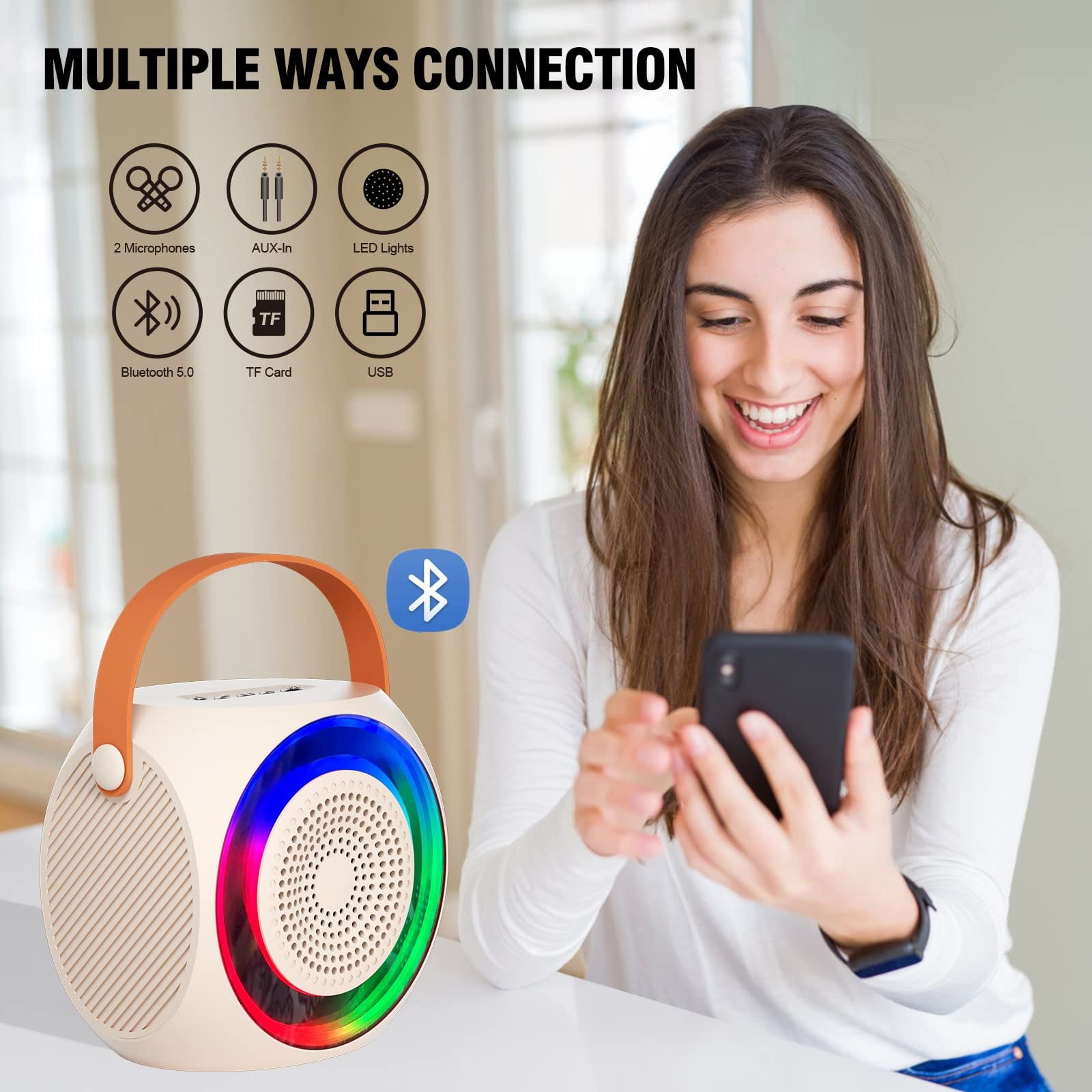 Parfait pour ajouter de l'excitation et de l'énergie à toute fête ou rassemblement, la machine de karaoké compacte avec effets d'éclairage LED vous permettra de vous divertir et de vous occuper toute la nuit. Parfait pour les petites fêtes, les écoles, les églises et les gymnases. 【Compact et puissant de qualité supérieure】La machine de karaoké avec Bluetooth et microphone sans fil dispose d'un haut-parleur intégré de 10 W conçu avec deux haut-parleurs de 5 W et un diaphragme de basse pour produire un son optimisé haute performance. Les 6 modes d'éclairage intégrés créent une expérience de karaoké immersive et dynamique. Avec un pilote audio avancé et un processeur de signal numérique, il rend la qualité du son plus claire, plus stéréo et équilibrée. Amusant inégalé : Délice dans chaque performance avec 5 effets de changement vocal, améliorant le chant de votre enfant avec plus amusant ; notre Mini Karaoke... Le design élégant et la belle boîte d'emballage en font un cadeau d'anniversaire parfait pour la famille et les amis. Changeur de voix parfait pour le karaoké en voiture, les fêtes à la maison, les salles de classe, les discours, d'autres occasions. Cette machine de karaoké portable prend également en charge les cartes Micro TF, Flash USB et la connectivité AUX-in, ce qui la rend compatible avec une gamme d'appareils tels que les téléphones mobiles, les tablettes et les PC. Haut-parleur Karaoké 10W Lumières LED Mini Machine De Karaoké - KENETUOS - KENETUOSK29NOIR - 2 Microphones - Bluetooth - Rechargeable USB - Jeux - Jouets Divertissement Famille Fête Anniversaire Birdeem Machine De Karaoké Pour Adultes Et Enfants, Haut-Parleur Bluetooth Portable Avec 2 Microphones Sans Fil Uhf Système Pa Avec Balle, Lumières Led... Un cadeau intéressant pour les enfants et vos amis qui aiment chanter et danser. Vous permet de passer un bon moment, de libérer du stress et d'ajouter de bons souvenirs. 【Machine de karaoké portable】Le haut-parleur dispose d'une sangle portable et robuste, léger et de petite taille, ce qui le rend facile à emporter partout, comme une fête d'anniversaire, une réunion, une salle de classe, des réunions de famille ou d'autres activités. Lorsque vos enfants ouvrent le cadeau, il doit y avoir un grand sourire sur leur visage et adorer les jouets cadeaux uniques. Machine Karaoké Portable Karaoké Enfant Euakee - 2 Micros Sans Fil - Voix Magiques - LED - Bluetooth - Cadeau 4-18 Ans - Rose Karaoke Enfant Fille 【Cadeau surprise pour les enfants】Le design mignon et l'utilisation simple en font le KTV portable idéal pour les filles, les garçons et les adolescents. Le microphone adopte la technologie de perçage mural sans fil UHF, réduction intelligente du bruit. Avec 2 microphones, quatre types d'effets vocaux magiques : bébé, femme, homme et mixage, ce qui peut répondre à plus de besoins et apporter plus de plaisir. Fonctionnement plus facile et poids léger adapté pour les enfants.