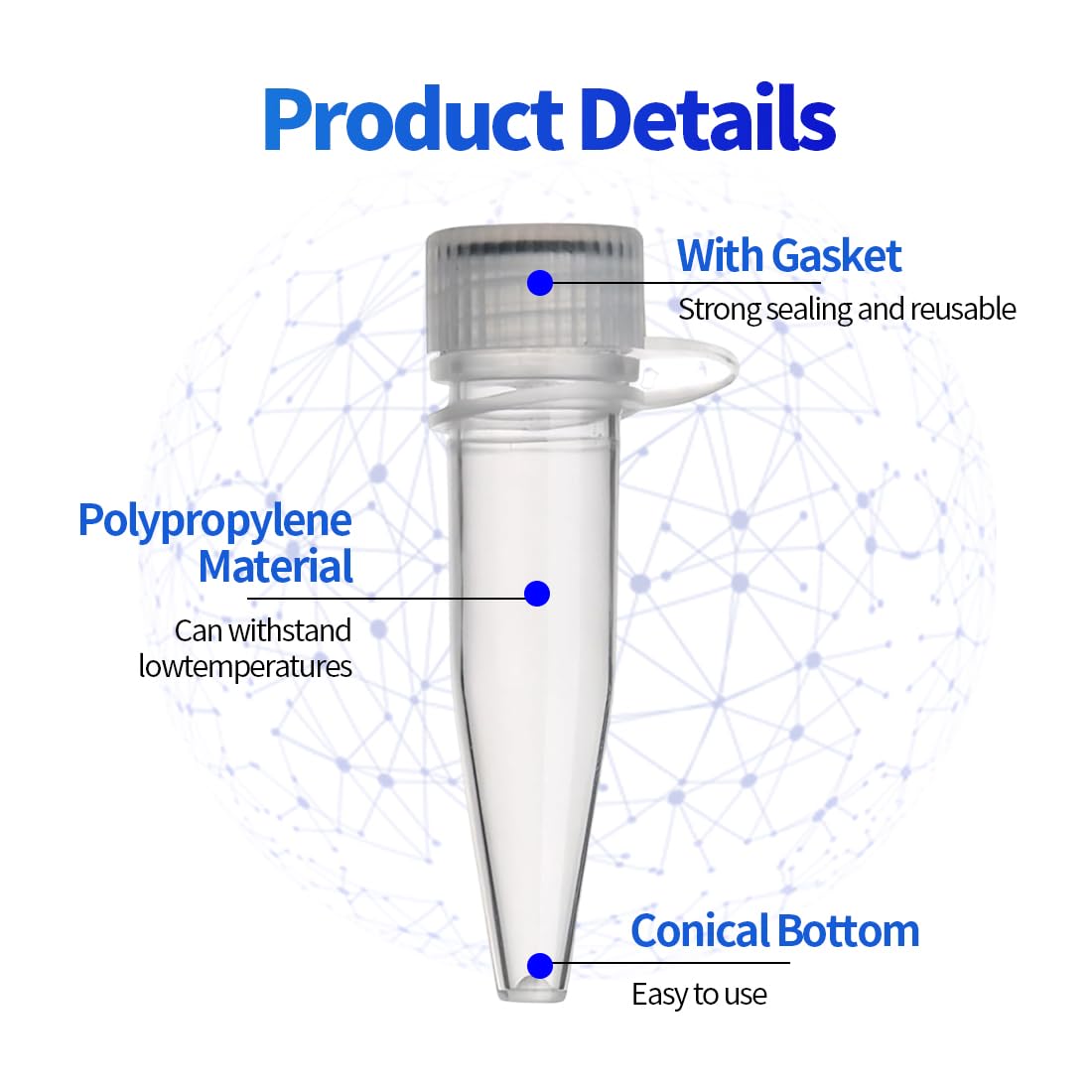 Applications polyvalentes : Parfaits pour les hôpitaux, laboratoires, écoles et plus encore. Tubes Centrifuger 1,5 Ml KEQAR 50 Pièces Tubes En Plastique Avec Bouchon à Vis, Tube à Centrifuger, Micro Centrifugeuse Tubes, Microtubes à Centrifuger, Tube à Essai Et Flacons Coniques Pour Laboratoire (1,5 ML) (Clair 50 Tubes Plastique Bouchon à Vis Laboratoire Matériau de qualité supérieure : Fabriqués en polypropylène robuste, ces tubes à essai sont durables, résistants à l'usure et incassables. Quantité pratique : Ce lot comprend 50 tubes transparents en plastique d'une capacité de 1,5 ml. Une quantité idéale pour un usage quotidien, offrant suffisamment de rechange Conception étanche sécurisée : Grâce au joint noir et au bouchon à vis, le contenu des tubes reste parfaitement scellé. Le design autoportant empêche tout glissement et garantit une conservation sans perte des échantillons icro tube à centrifuger 1,5 l, transparent, conique, stérile, sans... Idéal pour une utilisation à long terme dans les laboratoires, les écoles et d'autres environnements professionnels exigeants Le design autoportant empêche tout glissement et garantit une conservation sans perte des échantillons Utilisation facile : Les tubes sont équipés d'un bouchon à vis pratique qui permet une ouverture et une fermeture d'une seule main. Leur conception autoportante simplifie leur manipulation et assure un usage confortable au quotidien Lot de 100 tubes centrifugeuses 15 ml en plastique transparent avec Leur conception autoportante simplifie leur manipulation et assure un usage confortable au quotidien Quantité pratique : Ce lot comprend 50 tubes transparents en plastique d'une capacité de 1,5 ml. Parfait pour partager avec des collègues, des amis ou la famille