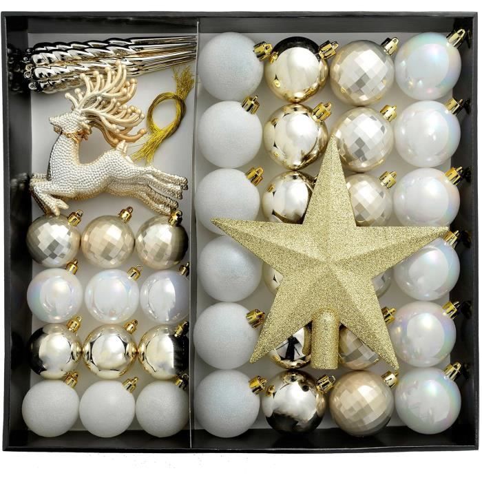 Boules Blanches Noel KI Store Lot De 25 Boules De Noël Neutres En Velours Blanc Crème Floquées Incassables Pour Décorations De Sapin De Noël Boule De Noel à Peindre Boules de Noël Blanches incassables Lot de 30, diamètres 3/4/6 cm, décoration Sapin de Noël et Maison, Textures Mat et Brillant, Plastique léger sécurisé Enfants Animaux, prêt à accrocher Qualité supérieure] : Ces boules de Noël vierges sont fabriquées en polypropylène (PP), ce qui leur assure durabilité et longévité pour de nombreuses fêtes à... Les enfants peuvent dessiner leurs propres motifs sur la surface des boules, ce qui développe leur imagination et leur dextérité. Laissez à votre créativité et personnalisez votre sapin avec ces magnifiques décorations. - 【Installation facile】: Ces boules décoratives suspendues sont conçues avec un crochet de suspension pour une suspension facile sur votre sapin de Noël ou tout autre endroit souhaité - 【Utilisation polyvalente】: Adaptées à une utilisation intérieure et extérieure, ces décorations d'arbre de Noël incassables peuvent être utilisées pour décorer non seulement les arbres de Noël, mais également , les guirlandes, les , les concerts, les réunions de famille, les décorations et autres décorations de vacances. Description: - 【Qualité supérieure】 : ces boules de Noël vierges sont fabriquées à partir de matériau PP, garantissant durabilité et longévité pour de nombreuses saisons de vacances à venir - 【Conception de peinture DIY】 : La surface vierge encourage la créativité. Spécification: - Couleur : Blanc - Matériau : PP Tableau de taille: - Diamètre de la boule 3 cm/1,18 pouce Le forfait Comprend: 24 boules de Noël décoratives 4 stylos Note: Veuillez autoriser de légères erreurs de 1 à 2 cm en raison de la mesure manuelle. 【Utilisation polyvalente】: Adaptées à une utilisation intérieure et extérieure, ces décorations d'arbre de Noël incassables peuvent être utilisées pour décorer non seulement les arbres de Noël, mais également , les guirlandes, les , les concerts, les réunions de famille, les décorations et autres décorations de vacances. Partagez la joie des fêtes : Ces boules de Noël sont des cadeaux idéaux pour votre famille, vos amis, vos voisins, vos collègues et tous ceux qui vous sont chers. Boule de noel incassable : la sélection produits Leroy Merlin de ce jeudi au meilleur prix ! Retrouvez ci-après nos 398 offres, marques, références et promotions en stock prêtes à être livrées rapidement dans nos magasins les plus proches de chez vous