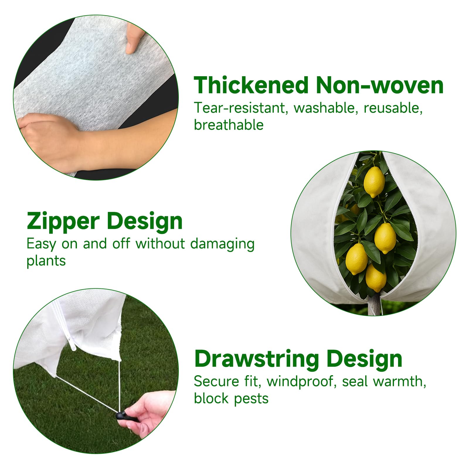 Protection Hiver Plantes Extérieures KINGLAKE 60X80cm Voile Hivernage Plante Exterieur - 2 PSC 70g/m² Housses D' Hivernage De Protection, Toile Sac Hiver Avec Fermeture à Glissière Et Cordon De Serrage, Pour Olivier Citronnier Réutilisable Respirant Facile Installer Vegamall 3Pcs Voile Hivernage Plante Exterieur, 80x120cm Taille de voile hivernage]2 PSC housses voile hivernage plante exterieur mesure 80 x 120 cm. Fabriqué en tissu non tissé épais de 70 g/m², il est plus épais et plus résistant aux déchirures, offrant un espace généreux pour protéger du froid une grande variété de plantes et d'arbres, tels que les petits arbres, les arbustes et les plantes en pot. [Fermeture éclair et cordon... Fabriqué en tissu non tissé épais de 70 g/m², il est plus épais et plus résistant aux déchirures, offrant un espace généreux pour protéger du froid une grande variété de plantes et d'arbres, tels que les petits arbres, les arbustes et les plantes en pot. 【Fermeture éclair et cordon de serrage】 Nos housses d'hiver pour plantes sont dotées d'une fermeture éclair latérale, vous permettant de protéger facilement vos plantes en les ouvrant simplement sans les retirer. Elles sont également munies d'un cordon de serrage pour bloquer efficacement le vent et vous permettre de resserrer facilement le bas lors de leur utilisation. 【Taille de voile hivernage】2 PSC housses voile hivernage plante exterieur mesure 80 x 120 cm. 【Facile à utiliser et réutilisable】Placez simplement la housse sur vos plantes, fermez la fermeture éclair et tirez sur le cordon. Elle est également facile à ranger : rincez-la à l'eau claire et laissez-la sécher à l'air libre pour une utilisation ultérieure. Elle les protège également des intempéries comme le gel, les fortes pluies et la neige, ainsi que des oiseaux, des insectes, de la volaille et d'autres animaux. Fermeture éclair et cordon de serrage] Nos housses d'hiver pour plantes sont dotées d'une fermeture éclair latérale, vous permettant de protéger facilement vos plantes en les ouvrant simplement sans les retirer. Nos voiles d'hiver sont idéales pour protéger les jeunes...
