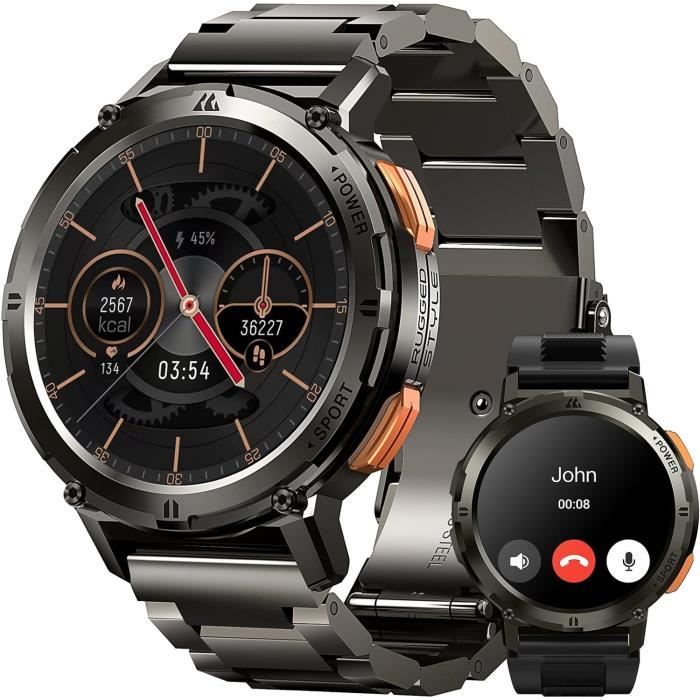 En utilisation normale, il peut durer 14 jours. 【Bracelet Double Multifonctionnel】équipé d'un bracelet en métal et d'un bracelet en silicone, il répond à vos besoins multiples. Montre Connectée KOSPET Homme Appel, 1.43'' Écran Toujours Activé Montre Connectée Homme Battery monstre de 480mAh : jusqu'à 15 jours en normal, 35h en GPS. Étanche 50m, avec mode natation pro. Suivi santé (sommeil, HR, SpO2), et plein de fonctions... Bracelet en silicone standard, équipé d'un boîtier en métal entièrement fermé, étanche 5 ATM et IP69K. 【Pourquoi Utiliser Un Écran AMOLED】L'écran AMOLED, fabriqué en matériaux auto-luminescents, affiche clairement le contenu même à l'extérieur sous une forte lumière. La montre intelligente étanche pour homme vous offre une expérience opérationnelle et visuelle très sensible. Il prend également en charge la surveillance du sommeil pendant de courtes périodes, adapté pour les travailleurs de différentes périodes. Jusqu'à 70 modes sportifs, y compris la randonnée, le ski, la natation et d'autres sports d'intérieur et d'extérieur. Résolution 480 x 480, l'écran AMOLED peut toujours s'allumer. Plus de 60 jours en veille. L'écran AMOLED permet d'économiser 40 % d'énergie par rapport à l'écran LCD. Smart Watches for Men, 60 Days Long Battery Life, 50M Waterproof, AI Voice Assistant, Answer/Make Calls, 1.43 AMOLED Always-on Display, Military Fitness Watch for Android iOS Dans le même temps, l'algorithme d'IA super économe en énergie de Breaking the Industry a été adopté pour minimiser la consommation d'énergie. La montre connectée répondant aux appels utilise des suiveurs de sommeil avancés pour gérer la qualité globale de votre sommeil. Vous pouvez voir l'heure sans appuyer sur aucune touche. Montre Connectée Homme Appel, 1.43'' Écran Always-On Amoled, 30+ Jours