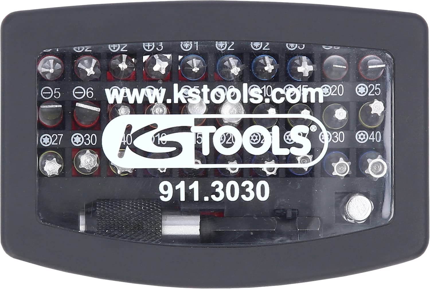 Cet élément de qualité professionnelle est gage d'efficacité. Données techniques : Coffret d’embouts de vissage code couleur ¼, 32 pièces KS Tools - Avec entraînement 6 pans selon DIN 3126 / ISO 1173 - C 6,3 - Pour une utilisation manuelle ou avec visseuse - Code couleur - avec adaptateur 1/4 et porte-embouts magnétique à verrouillage rapide - Idéal pour une utilisation en atelier et en industrie - Agencement précis et ordonné des embouts 1/4 les plus courants - Acier nickelé - En acier spécial - Avec son coffret en matière bi-composant Douille Torx Femelle Forêt KS Tools Jeu D'embouts Torsion Power - Vissage à Code Couleur - 33 Pcs - 918.3010 Jeu D'embouts Vissage Jeu d'embouts de vissage à code couleur TORSIONpower® 1/4, 32 pcs... Coffret d’embouts de vissage : Peu importe si vous êtes bricoleur amateur ou professionnel, profitez de ce coffret d’embouts de vissage à code couleur empreinte en acier nickelé. KS Tools se distingue par une grande qualité des produits, une constante innovation, un rapport qualité-prix attractif et une grande flexibilité. Aujourd’hui, plus de 32 000 articles les plus divers sont déposés dans l’entrepôt central, du marteau au burin aux outils spécialisés pour le secteur automobile et des véhicules utilitaires, du chauffage et des sanitaires, la technologie de la climatisation et avant tout l’industrie en passant par un grand nombre de jeux de clés. Garantie 100% Satisfaction : Adopter un produit KS Tools c'est choisir une marque professionnelle capable de vous apporter sécurité, qualité et confort. Ils sont adaptés à une utilisation manuelle ou avec visseuse. La gamme des produits offre à des utilisateurs très exigeants des solutions aux problèmes et des outils intelligents. Il peut tout à fait servir pour une utilisation à domicile comme pour un usage sur votre lieu de travail, à votre convenance Des processus de production les plus modernes et un contrôle permanent des outils fabriqués garantissent une grande fiabilité de fonctionnement et la longue durée de vie du produit. Coffret d'embouts de vissage 32 pièces (phillips, pozidrive, fente... Pour travaux de vissage en série Notre kit d’embouts de vissage permet un vissage en série rapide et efficace. Nous avons de grandes exigences en ce qui concerne la qualité des produits. 918.3030 : Jeu d'embouts de vissage à code couleur