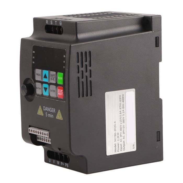 L'écran haute définition offre une surveillance intuitive des données. Contenu de l'emballage : 1 variateur de fréquence. La capacité de varier la fréquence et la tension variateur de fréquence mono tri et permet aux utilisateurs d'ajuster la plage de vitesse du moteur en fonction des besoins spécifiques de l'application, offrant ainsi une flexibilité opérationnelle et une efficacité énergétique accrue Matériau : plastique ABS ignifuge., Couleur : blanc. Facile à utiliser et polyvalent : câblage simple de 230 V et débogage facile des paramètres avec commutation préréglée à un bouton. Mode de contrôle : boucle fermée V/F. Caractéristiques : Contrôle et protection avancés : ce convertisseur de fréquence dispose d'un moyen de contrôle unique pour une puissance élevée, un couple élevé et une régulation précise de la vitesse. Il prend en charge la communication 485 pour une forte capacité de charge et des applications industrielles. Contrôle Moteur Variateur De Vitesse VFD 1HP, 0,75 KW, 3,5 A, Entrée 1 Ou 3 Phases 220 V Vers Sortie 3 Drive JLS-E-2S-1,5GB-4T Ses neuf technologies de protection sécurisent le fonctionnement dans diverses conditions, y compris la protection contre la surchauffe et les courts-circuits. Le variateur de fréquence 4 kW, 18 A et 5 CV assure un contrôle précis de la vitesse du moteur grâce à une fréquence et une amplitude précises du courant d'entraînement Tension de sortie nominale : 380 V triphasé., Puissance : 1,5 kW. Dimensions : 143 x 85 x 116 (126) mm. Caractéristiques : Nom de la pièce : variateur de fréquence. Variateur Monophasé Triphasé Variateur De Fréquence VEVOR 2,2 KW 1 manuel d'utilisation (français non garanti). La conception à double couche haute configuration (alimentation + carte mère) assure une performance stable et durable. Tension d'entrée nominale : 220 V monophasé. Fréquence d'usine : 50 Hz. Design central : des caractéristiques telles que le câblage simple à 230 V et les réglages faciles des paramètres via des préréglages à un seul bouton rendent ce lecteur convivial. Idéal pour les ventilateurs, pompes, machines CNC, broyeurs à boulets, moulage par injection plastique, concasseurs, convoyeurs et équipements textiles. Nombreuses applications industrielles : excellente performance anti-trébuchement résistant aux conditions de température, d'humidité et de poussière. Modèle : JLS-E-2S-1,5 GB-4T. La conception du module IPM et IGBT améliore l'efficacité, réduit la génération de chaleur et offre une protection automatique pour une qualité durable. Sortie d'onde sinusoïdale continue : le stabilisateur AVR intégré garantit une sortie continue d'onde sinusoïdale pure, ce qui est crucial pour une transmission efficace de l'énergie.