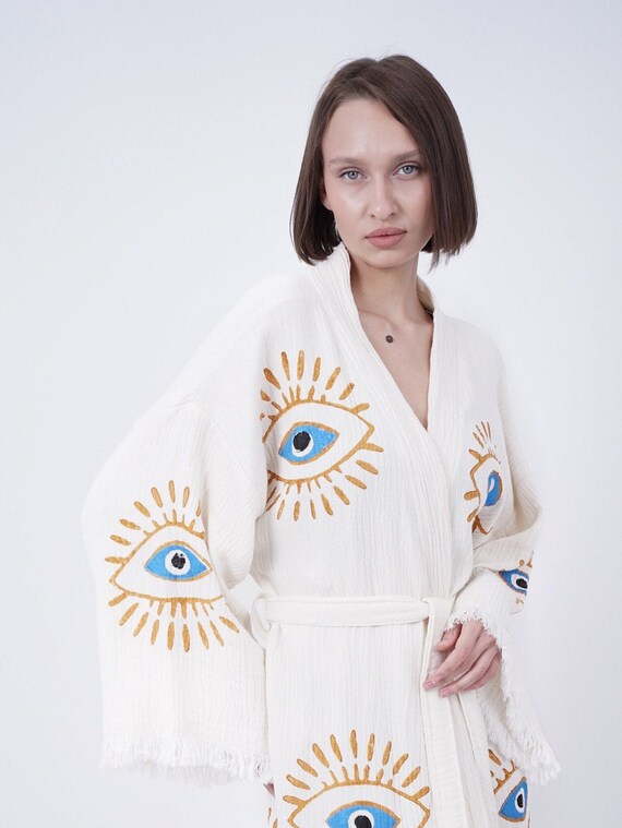Selon l'histoire ancienne, on pense que la perle du mauvais œil nous protège de la malchance. Histoire BC Il remonte à 700 avant JC et a été utilisé en Anatolie depuis. Notre kimono bohème surdimensionné est produit en taille unique et il convient aux tailles S, M, L, XL. Le kimono, qui contient des motifs anatoliens et des motifs ethniques, a également une broderie de perles anatoliennes mauvais œil. Kimono de Plage Tropical Print Les plus beaux exemples de cette technique, qui a une histoire profondément enracinée d'environ 4000 ans, ont émergé du 17ème siècle et se poursuit jusqu'à nos jours avec ses motifs et dessins modernes. Vous pouvez le laver délicatement en machine ou à la main et ne pas utiliser d'eau de Javel ou d'adoucissant. Mauvais œil Motif Ethnique Amulette Bleue Grecque Mystique Imprimé... - Coupe standard UE : tour de poitrine – S/M 88 cm – 96 cm 70 cm – 78,7 cm – L/XL 96 cm – 104 cm (78 cm) – 2XL XXX-Large 51 pouce (104 cm) - 110 cm (86 cm) - 94 cm, 100 % fait main, Coton biologique, Certifié Oeko-Tex Standard 100 (Fabriqué en Turquie) Tous nos produits ultra doux sont certifiés OEKO-TEX Standard 100., Assurez-vous de laver notre kimono écologique, 100 % fait main, une fois avant de l'utiliser. Dans cette technique d'impression, les colorants à base de plantes sont utilisés sur les matériaux en pierre ou en bois, et leur coloration est plus longue que les textiles industriels. Kimono Taille Unique Femme Kimono Bohème Mauvais œil - France Kimono Taille Unique S-3xl Kimono de Plage Bohème | N°1 sur les Tuniques de Plage Vous pouvez nous contacter pour des mesures détaillées et toute question que vous pourriez avoir.