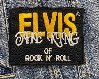 Elvis Presley The King Of Rock N Roll Écusson Patch En Fer Brodé Sur Accessoire Elvis - Elvis - the King- Patch- Aufnäher - Aufnäher Shop / Patch... patch elvis presley ecriture noir rouge doré rock roll écusson thermocollant veste chemise