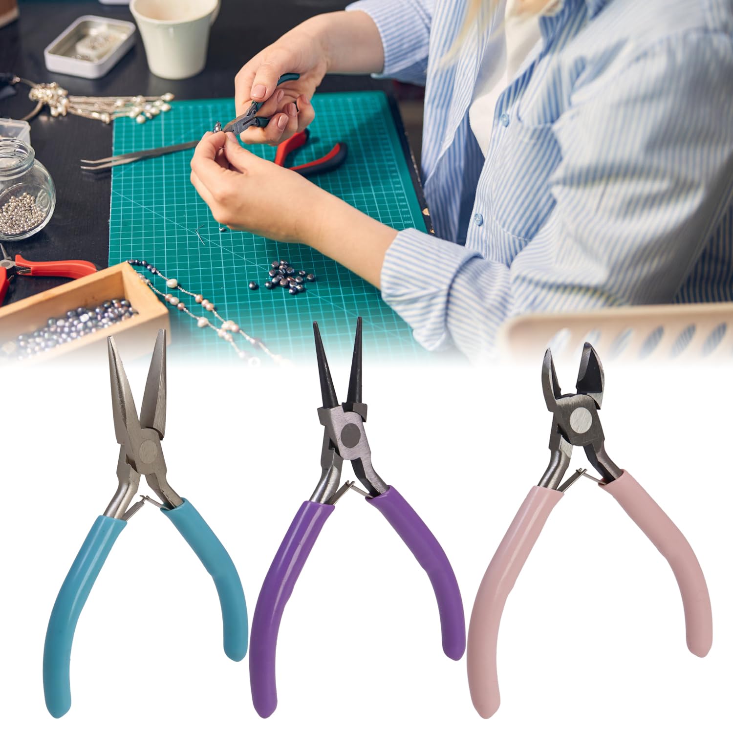 Cet ensemble de pinces à bijoux à 3 paquets comprend des pinces à nez d'aiguille, des pinces à nez rond et des coupe-fil, idéal pour la fabrication de... Lot de 3 pinces pour bijou - Créalia : Solides et maniables, ces pinces Créalia en acier permettent entre autre de plier, recourber, former et couper les fils métalliques pour bijoux Pince Precision Kit 3 Pinces Pour Création De Bijoux Pince Bijou Ensemble de Pinces à Bijoux 3 Pièces, Outils de Fabrication de Bijoux, Pinces à Cintrer les Fils, Fabrication de Bijoux, Perles, Façonnage, Artisanat du Fil
