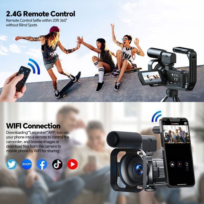 Il est doté d'un écran tactile 3 pouces à 270 degrés et d'un zoom numérique 16x. Pointez la télécommande vers le récepteur sans l'obstruer., 5., L'enregistrement en boucle, le ralenti et l'enregistrement accéléré ne peuvent pas être utilisés simultanément. Il suffit de connecter cette camera video 5K à votre ordinateur via un câble USB et de sélectionner le mode « Caméra PC ». Il est également doté d'une fonction dédiée à YouTube qui vous permet de visualiser ce que vous enregistrez, idéal pour l'auto-blog. NE PAS l'exposer à l'eau ou à d'autres liquides. Par conséquent, maintenez une distance de prise de vue d'au moins 0,6 m (2 pieds)., 3., La caméra 5K prend en charge les cartes SDHC U3 de 64 Go (incluses). Le Handycam comprend 1 câble USB, 1 câble HDMI, 1 boîtier DV, 2 piles, 1 carte mémoire de 64 Go, 1 stabilisateur portable, 1 microphone, 1 trépied, 1 télécommande et 1 manuel d'utilisation Connexion Wi-Fi et vision nocturne infrarouge: La vision nocturne infrarouge vous permet de prendre des photos nettes, même dans l'obscurité. Veuillez sauvegarder les fichiers importants rapidement., 6., Si vous sélectionnez Caméra PC, vous devez télécharger le logiciel approprié. Vous pouvez également visionner vos vidéos HD en connectant la camera pour filmer à un téléviseur via un câble HDMI. (L'autofocus et le zoom optique ne sont pas pris en charge., ) 2., La caméra vidéo numérique avec vision nocturne dispose d'un zoom numérique 16x, mais pas de fonction de mise au point. Le zoom est également indisponible. Pour obtenir le manuel dans d’autres langues, veuillez nous contacter ou scanner le QR code sur l’emballage pour télécharger la version électronique. Lorsque le ralenti ou l'accéléré est activé, l'enregistrement audio est désactivé par défaut et ce paramètre ne fonctionne pas. Autonomie et service après-vente convivial: Équipées de deux batteries rechargeables de 2 400 mAh, chacune offre jusqu'à 150 minutes d'autonomie en continu lorsqu'elle est complètement chargée et prend en charge l'enregistrement pendant la charge. Caméra Vidéo 5K 56Mp Camescope,Wifi Vlog Camera Youtube Zoom Numérique 16X Caméscopes,Écran Tactile 3 Ir Vision Nocturne Camcorder Video Camera Avec 2 Piles... Le Wi-Fi du caméscope 5K ne peut se connecter qu'à un téléphone portable et ne dispose pas d'accès Internet., 7., Le caméscope numérique n'est PAS étanche. Appuyez simplement sur le bouton d'alimentation pour activer le mode vision nocturne. 1 Photo 56 Mpx 2 Zoom numérique 16x 3 Vision nocturne IR Caméra 5K 56MP écran Tactile WiFi Vision Nocturne Kit Caméra Avec Accessoires Caméscope 5K 56MP Double Objectif WiFi - Zoom 16x, Écran Tactile 3" - Vision Nuit IR - Ideal YouTube Et Vlogs Camera Vidéo Wifi 56mp Camera Vlog 4k Lorsque la stabilisation électronique EIS est activée, l'enregistrement vidéo en résolution 5K/25 ips est impossible, mais uniquement en 4K/60 ips. Après avoir activé le mode d'enregistrement spécial, appuyez sur REC pour que la caméra fonctionne dans le mode spécifié. (Remarque : l'objectif de la camescope video camera 5K est à focale fixe, ne prend pas en charge l'autofocus ni la mise au point manuelle, et la distance de prise de vue optimale est de 0,6 mètre ou plus., ) Support stabilisateur portable pliable pour une meilleure stabilité de la camcorder video camera 5k pendant l'enregistrement. 1 Caméscope 5K 2 Écran tactile 3 3 Wi-Fi 4 Stabilisateur 5 Pare-soleil Le manuel inclus est disponible en anglais, allemand et espagnol. (En raison des limitations du système de fichiers FAT32, chaque fichier vidéo ne peut dépasser 4 Go. Caméra vidéo 5K 56MP camescope Vidéo de marchand Le Handycam comprend 1 câble USB, 1 câble HDMI, 1 boîtier DV, 2 piles, 1 carte mémoire de 64 Go, 1 stabilisateur portable, 1 microphone, 1 trépied, 1 télécommande et 1 manuel d'utilisation. Si vous avez besoin du manuel dans d'autres langues, veuillez scanner le code QR sur l'emballage pour télécharger la version électronique., 9., En raison de la petite taille de l'emballage, les accessoires ne peuvent pas être imprimés sur l'emballage. Une longue vidéo sera donc automatiquement divisée en clips vidéo de 15 à 20 minutes., ) Caméscope vidéo 5K 56MP Double objectif WiFi 16X Zoom numérique 3,0