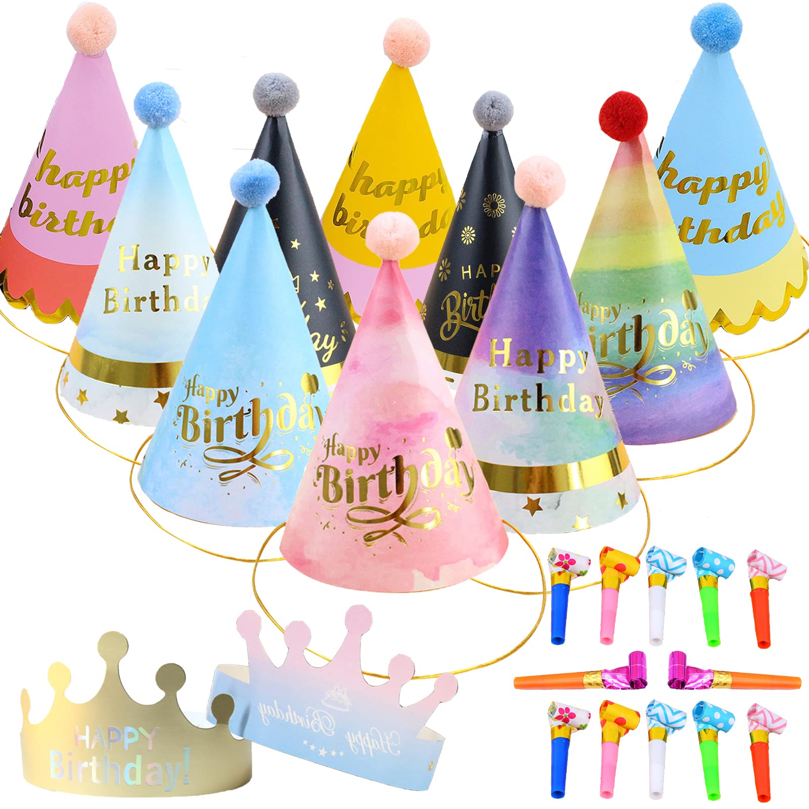 Parfait pour toutes occasions : Idéal pour les anniversaires d'enfants ou d'adultes, Noël, Halloween, mariages, séances photo pour nouveau-nés, célébrations de festivals et bien plus. Chapeau Pour Anniversaire Kit Chapeau Anniversaire Enfant GWAWG 17 Pièces Chapeau De Couronne D' Anniversaire Con Sifflet Colorées De Fête, Chapeau De Fête D'anniversaire En Papier Pour Adultes Enfant Décoration Fête Enfants Adultes Matériaux de qualité supérieure : Ensemble de chapeaux de fête fabriqué en papier de haute qualité, résistant et difficile à déchirer. Taille parfaite : chaque chapeau de fête d'anniversaire mesure 16 cm, 10,9 cm de diamètre inférieur, la longueur de la ficelle est de 29 cm. Les chapeaux de... Contenu du pack : 6 chapeaux tricorne, 2 couronnes et 12 sifflets colorés pour animer vos célébrations Utilisation sûre : Trompettes pour enfants en plastique et papier de qualité, sûres, non toxiques et faciles à transporter. Description Des designs brillants et uniques font de vous et de enfants de fête et plus de plaisir. Une taille appropriée garantit un... Un accessoire apprécié de tous Ambiance festive garantie : Accessoires festifs accompagnés de trompettes, idéaux pour célébrer les anniversaires, le carnaval ou le Nouvel An. Contenu du pack : 6 chapeaux tricorne, 2 couronnes et 12 sifflets colorés pour animer vos célébrations Utilisation sûre : Trompettes pour enfants en plastique et papier de qualité, sûres, non toxiques et faciles à transporter. Un accessoire apprécié de tous 24 pcs Chapeau Anniversaire Kit 10 pcs Chapeaux Cône de Fête2 pcs Adaptés à la taille de la tête de la plupart des enfants, les adultes peuvent combiner deux chapeaux pour les porter. Leur taille convient aux enfants, garçons, filles et adultes, ajoutant une touche magique à vos fêtes