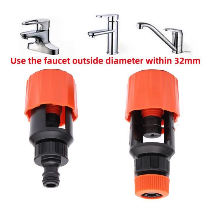 Adaptateur universel tuyau sur robinet au meilleur prix Comment brancher un tuyau d'arrosage sur un robinet de cuisine ou de salle de bain Adaptateur Universel Robinet Jardin Kit Complet D'arrosage,Adaptateur De Robinet Universel,connecteur D'eau Diamètre <16 Mm Spécifications : Couleur : Noir Longueur : environ 5,5 cm Diamètre maximal : environ 4 cm Compatible avec : robinets standard d'un diamètre extérieur inférieur à 16 mm Contenu : 2 raccords de tuyau universels pour robinet 【Installation facile 】 ce raccord de robinet anti-retour pour tuyaux est doté d'une conception simple à pousser et à serrer pour une installation et une utilisation faciles. Universel 23 mm robinet adaptateur connecteur rapide cuisine salle de bain robinet robinet... Le connecteur de robinet universel est livré avec un joint d'étanchéité en caoutchouc. Il suffit de tourner la clé pour le serrer sur le robinet. 【Large gamme d'applications】Le voleur d'eau de connecteur de robinet pour conduites de tuyau convient à tous les types de robinets de cuisine d'intérieur, mais également aux tuyaux d'arrosage, aux troncs d'arbres, aux mobil-homes, aux bateaux, aux pelouses, aux systèmes d'irrigation de jardin et plus encore. 【Conception étanche】La fabrication précise du raccord de tuyau d'arrosage assure une étanchéité fiable et empêche la perte d'eau, ce qui rend le connecteur de robinet particulièrement efficace et respectueux de l'environnement.