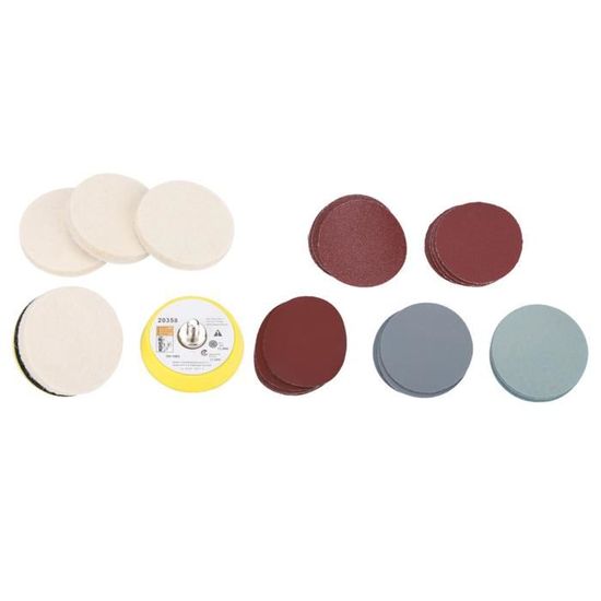 Idéal pour éliminer les rayures sur le verre, 34 pièces par lot, très pratique Remplissez un demi-chemin avec de l'eau., 3., Placez votre roue de polissage dans l'eau ; laissez-la pénétrer à la vapeur mais ne coule pas d'eau., 4., Mettez un peu de dioxyde cérique dans le tube d'empty et ajoutez suffisamment d'eau pour créer un mélange fin (un mélange fin, de pâte comme de la pâte)., 5., Attachez la roue de polissage à la vapeur à votre perceuse électrique et trempez-la dans le slurry., 6., Placez la roue de polissage sur votre zone de travail, utilisez une roue en feutre de petite taille si les rayures sont près des coins des fenêtres. Enlever Rayure Profonde Verre Kit Complet De Polissage Du Verre 34 Pièces Ensemble Tampon Feutre Anti Réparation Rayures Vitre Kit de polissage pour verre - Kit de polissage en feutre - Pour... Maintient le mouvement de la roue en mouvement haut et bas et circulaire. Largement utilisé, mélangez la poudre avec de l'eau et appliquez sur la surface du verre. Assurez-vous qu'il n'y a pas de saleté ou de rayures sur le verre., 2., Vous avez deux petits tubes en plastique prêts, carrés ou de taille pint. Consommation générale, mélangez la poudre avec de l'eau et des gels pour la surface en verre Si votre slurry est sec, vous pouvez le pulvériser avec une bouteille de spray remplie d'eau. Pour restaurer les fenêtres, miroirs, tablettes, pare-brises, tables en verre, réservoirs à poissons, etc. Travaillez le tampon de polissage sur les rayures, gardez le verre propre 2 disques de polissage de 50 mm. Kit d'élimination des rayures sur verre, 34 pièces, pour rayures profondes, dioxyde cérique, disques abrasifs, tampons en feutre pour verre de pare-brise Kit de réparation pratique pour le bricolage, outil de polissage, complet pour vous. Pour restaurer les fenêtres, miroirs, plateaux de table, pare-brises, tables en verre, aquariums, etc. Caractéristiques : Matériau : multiple., Couleur : voir photo. Kit De Polissage De Verre De 34 Pièces-Lot - Éliminateur De