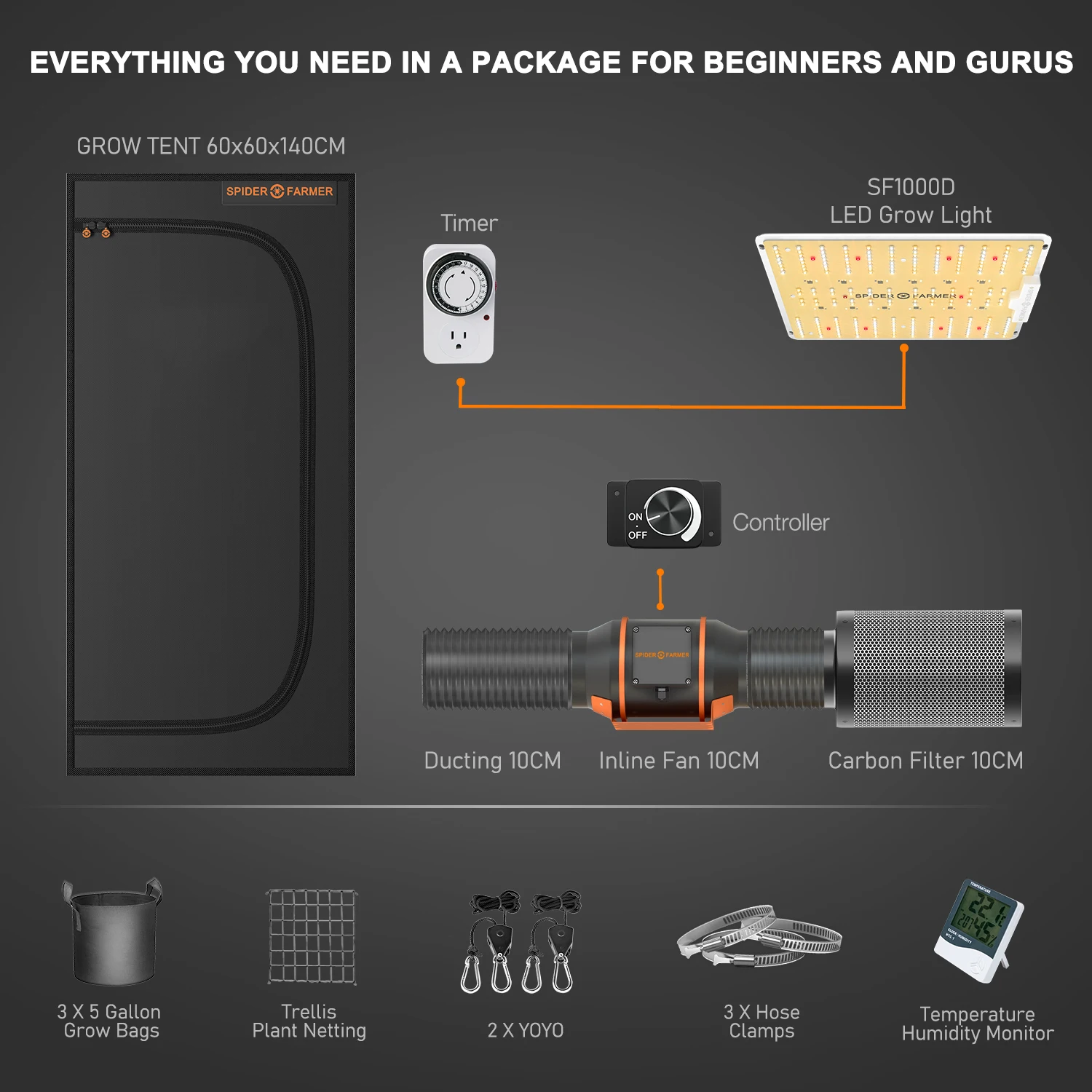 Lampe De Culture Led Kit Culture Indoor 70x70x160cm Tente Culture Complète 70x70x160cm - Kit Croissance Plantes LED 100W - Ventilateur Et Filtre Charbon Growbox LED 100W Ventilateur Tente De Culture Complète Chambre De Culture Kit Complet Pack Chambre De Culture LED 1000W Full Spectrum - 80x80x160cm. Kit Box Complet, LED Avec Variateur, Extracteur, Filtre à Charbon... - Jardin Box De Culture Kit Complet La tente de 70x70x160cm est robuste avec son cadre métallique et son revêtement réfléchissant. Inclus : une lampe LED 100W à spectre complet, un ventilateur 4... Le plateau inférieur empêche les fuites d'eau sur le sol et est équipé d'une fenêtre d'observation et de plusieurs raccords de ventilation. 【Lampe de culture 100 W】 : la lumière à spectre complet est très adaptée à la croissance, à la floraison et à la fructification de toutes les plantes. Contrôlez la durée d'éclairage de manière raisonnable en fonction des besoins de la plante. 【Kit complet Growbox】 : comprend une tente de 70 x 70 x 160 cm, une lampe de culture LED de 100 W, un ventilateur d'extraction de 4 pouces, un filtre à charbon actif, une minuterie mécanique, un thermo-hygromètre, un tube en aluminium, un collier de serrage, un sac de plantation, un plateau, des ciseaux, un filet à branches, des lunettes de protection, un cordon et d'autres accessoires complets. 【Système de ventilation puissant】 : le système de ventilation se compose d'un ventilateur d'extraction de 4 pouces et d'un filtre à charbon, ainsi que d'un tuyau en aluminium, il est très facile à installer et à utiliser ; il assure un flux d'air puissant et une circulation d'air adéquate pour éliminer les odeurs. 【RAPIDE ET SIMPLE】 : notre kit de tente de culture est conçu pour être facile à installer, même pour les débutants ; il convient à différents endroits de votre maison, y compris le garage, le balcon, la buanderie et le placard. (N'hésitez pas à nous contacter si vous avez des questions) Les kits de tente de culture Mars Hydro 70×70 comprennent tout ce dont vous avez besoin pour démarrer un nouveau système de culture d'intérieur...