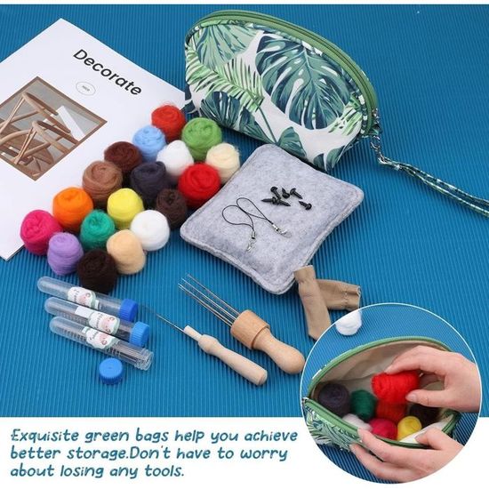 - Grâce à sa poignée légère sur le dessus, la boîte est facile à transporter et idéale pour les voyages, les excursions ou les loisirs créatifs. 【Laine mèche 36 couleurs】Notre kit comprend 36 couleurs vives de laine à feutrer. 【Boîte de rangement portable】Pratique et peu encombrante, cette boîte de rangement transparente dispose de trois compartiments séparés pour ranger soigneusement le kit de feutrage et les accessoires. Tous les accessoires se rangent facilement après utilisation. Feutrage à l’aiguille Needle Felt Kit, Needle Felt Wool, Convenient and Durable Easy for Kids 【Kit de feutrage à l'aiguille 119 pièces】Notre kit comprend 36 couleurs de laine à feutrer, 12 aiguilles (fines, moyennes et grossières), 10 paires d'aiguilles noires (fines, moyennes et grossières), 12 aiguilles à 9 formes, 22 anneaux marqueurs métalliques, 6 chaînes (noires et vertes), 5 clochettes argentées, 4 formes de feutrage, 1 support de manche en bois, 1 poinçon, 2 gants, 1 pince à épiler, 1 paire de ciseaux, 1 tapis en mousse, 1 bâton de colle, 2 porte-clés, 1 ruban adhésif et 1 boîte de rangement. Rangement pratique - La boîte de rangement transparente à 3 niveaux assure une organisation optimale. Bien adapté au feutrage à sec et au feutrage à l'aiguille en raison de la texture grossière. 36 couleurs assorties, répondent à vos besoins pour le bricolage Idéal pour les amateurs de feutrage à l'aiguille et d'artisanat. Contenu de la livraison : 12 aiguilles (fines, moyennes, grosses) 10 paires d'yeux noirs (fins, moyens, gros) 12 aiguilles en forme de 9 22 anneaux marqueurs métalliques 6 chaînes (noires, vertes) 5 grelots argentés 4 formes en feutre de laine 1 support de manche en bois 1 poinçon 2 gants 1 pince à épiler 1 paire de ciseaux 1 tapis en mousse 1 bâton de colle 2 porte-clés 1 ruban adhésif 1 boîte de rangement Matériaux de haute qualité - Notre kit de feutrage à l'aiguille est fabriqué à partir de matériaux de première qualité, doux, moelleux et très malléables. Chaque couleur est emballée séparément dans un sachet plastique refermable de 3 grammes par couleur. Kit Démarrage Feutrage Sec Humide Kit D'aiguilles De Feutrage En Laine Colorée 20 Pièces Avec 2 Types D'aiguilles Pointe étoile Et Accessoires Feutrage Aiguilles Yeux Kit De Feutrage À L'Aiguille, Kit Laine Feutrée, Laine Feutrage Outil, Tissu Floral, Laine... Dotée d'une poignée de transport sur le dessus, elle est idéale pour les déplacements.