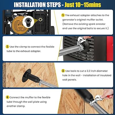 Il convient à la plupart des générateurs et des générateurs portables, tels que T07571, T07573, WH03242, H07552., Construction de matériaux sélectionnés: Ce kit d'extension d'échappement du générateur est construit en acier inoxydable de qualité aéronautique et en acier galvanisé et en couvre en poudre pour fournir des performances stables dans toutes les conditions météorologiques. Kit Ventilation Générateur Kit D'extension D'échappement Pour Générateur Avec Plaque De Montage Isolée à Travers Le Mur - Réduction Du Bruit De 50 % - Compatible Avec Firman H07552 Wh03242 T07571 T07573 Honda Eu6500is Eu7000is Silencieux Générateur Avec Grille Description du produit: Ce kit d'extension d'échappement du générateur comprend une construction en acier inoxydable de qualité aérospatiale avec une calandre de réduction du bruit personnalisée qui diminue le bruit d'échappement de plus de 55%. Améliorez votre expérience de générateur dès aujourd'hui avec notre kit silencieux d'extension d'échappement, et profitez d'une source d'énergie plus silencieuse, plus sûre et plus fiable 2550,00 g / 89,95 oz Taille de la plaque: env. Réduction du bruit à haute efficacité: notre kit de silencieux d'échappement adopte une nouvelle conception améliorée, une calandre de silencieux à haute densité spécialement conçue et un coton de silencieux interne, ce qui peut réduire considérablement le bruit d'environ 55% tout en absorbant mieux les solides nocifs dans le gaz d'échappement. Ensemble d'échappement de silencieux Générateur de moteur à essence... Spécifications Type d'article: Kit d'extension d'échappement du générateur Matériel: acier inoxydable, acier galvanisé Poids: env. y compris les adaptateurs universels, la plaque murale isolée et les accessoires de sécurité, il offre une ventilation sûre pour les générateurs portables dans divers environnements. Le port d'échappement de style grille empêche efficacement les petits animaux d'entrer dans le port d'échappement. Kit d’extension d’échappement 3 pièces Cela rend votre générateur plus silencieux, idéal pour les environnements communautaires et domestiques. Universal silencieux silencieux: Le kit d'extension de silencieux du générateur est très compatible et est livré avec deux adaptateurs universels.