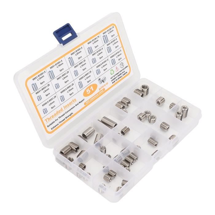 Kit d'Assortiment d'Inserts de Réparation de Filetage - DIL - 51Pcs Ce kit Helicoil est indispensable pour réparer les filets endommagés sur tes machines ou pièces mécaniques ! Spécifique M7x1.0mm, il inclut 25 inserts... Réparation Trou Borgne Kit D'inserts De Réparation De Filetage M7 25 Pièces Kit De Reparation De Filetage M7 25 Pieces Kit De Machines De Traitement Efficace Avec Boite En Plastique 94518495 Inserts Filetage M7 Acier Alliages Réparation efficace : ce kit de réparation de filetage M7 offre une solution de réparation beaucoup plus efficace par rapport à d'autres alternatives, ce qui en fait un choix fiable pour la restauration de filetages. Convient à divers matériaux : le kit d'inserts de réparation de filetage est idéal pour le traitement des matériaux en acier courants et des alliages non ferreux, pour les applications de traitement de trous borgnes. Kit d'inserts de reparation de filetage M3 25 pieces avec boite en... Restaurer les filetages endommagés : Excellent choix pour restaurer les filetages endommagés sur surfaces en acier, en fer, en aluminium et en métal décollées, croisées ou endommagées. Restaurer les fils endommagés : Excellent choix pour restaurer les fils endommagés sur les surfaces en acier, en fer, en aluminium et en métal qui sont décollées, croisées ou endommagées. Pratique et polyvalent : le kit d'inserts de réparation de filetage M7 est pratique et adapté à une utilisation dans différents types de machines de traitement, garantissant un processus de réparation sans faille. Réparation efficace : ce kit de réparation de filetage M7 offre une solution de réparation beaucoup plus efficace par rapport à d'autres alternatives, ce qui en fait un choix fiable pour la restauration de filetage.