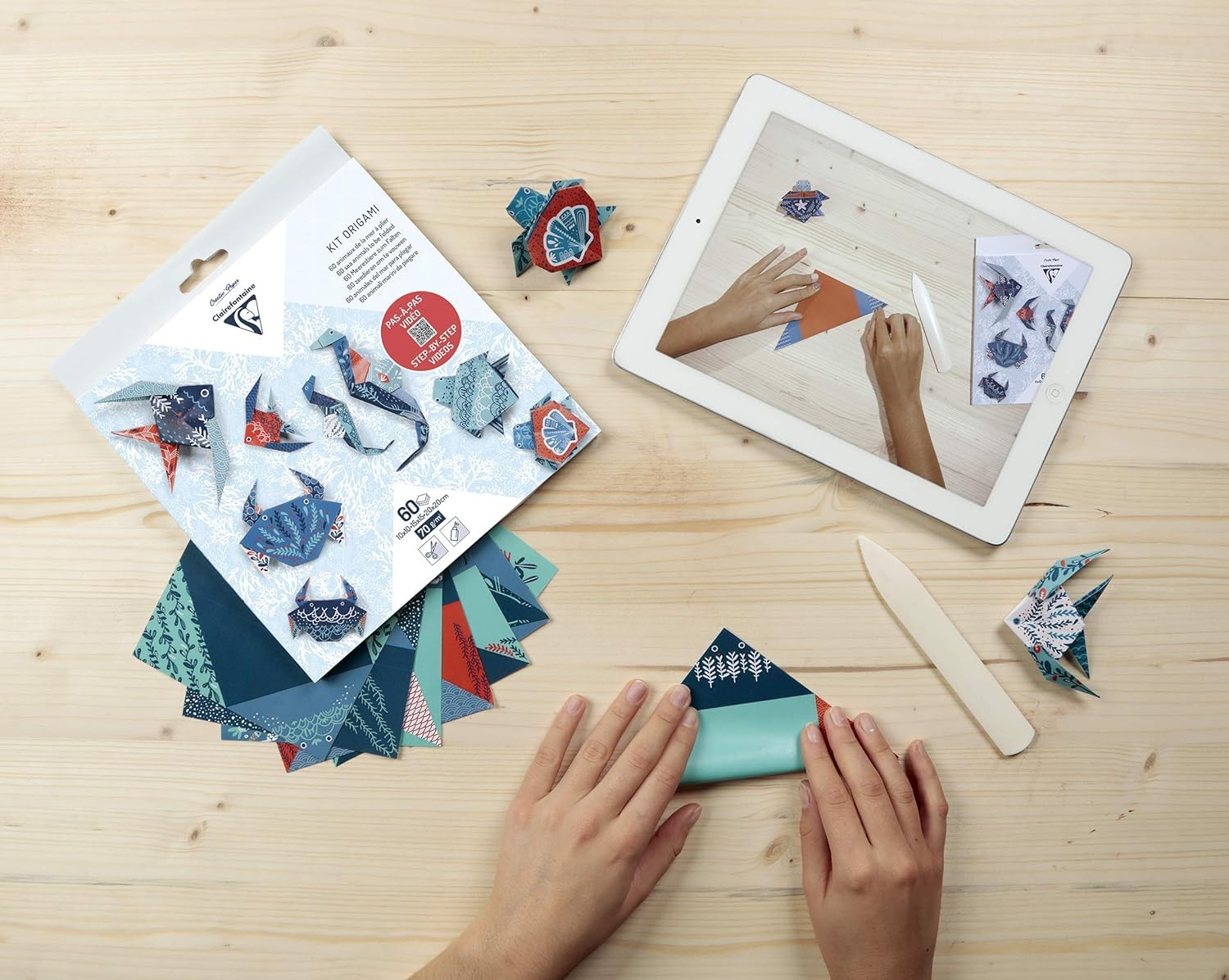 Clairefontaine Origami (70 g/m², 60 x) - acheter sur CONTENU : ce kit contient 60 feuilles coupées dans 3 formats différents sur un papier 70g/m² 60 Feuilles Origami Faune Marine 3 Formats Clairefontaine 95367C - Origami Kit De 60 Hojas 70g 10x10cm Cahier De Dessin 1 QR CODE à flasher sur la pochette vous guidera dans le pliage., 70 g. Super pratique pour faire des origamis de différentes tailles ! Clairefontaine 95354C - 60 Feuilles de Papier Origami 70g-m², Format... Contenu : ce kit contient 60 feuilles découpées en 3 tailles différentes sur papier 70g/m² : 20 feuilles au format 10x10cm, 20 feuilles au format 15x15cm et 20 feuilles au format 20x20cm. 4 modèles pliables : poisson, crabe, hippocampe et tor disponibles en 5 décorations différentes. Un grain d'imagition et d'habileté suffisent pour laisser libre cours à la créativité. Activité bien-être : se concentrer sur le pliage a un effet anti-stress.