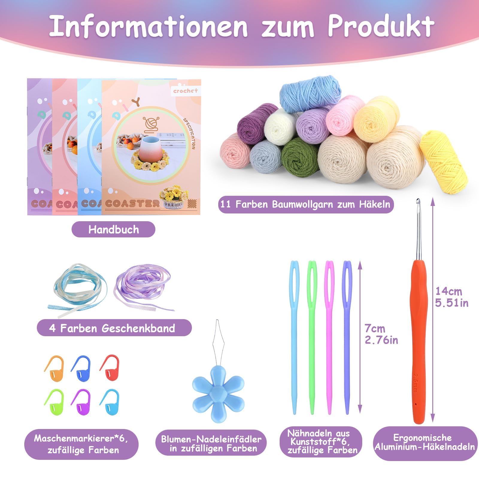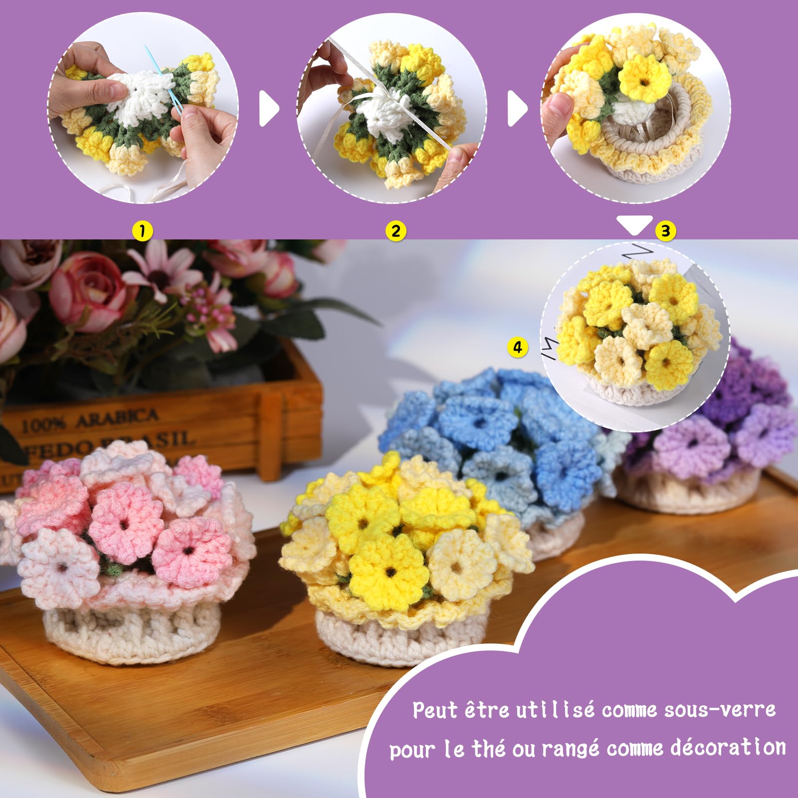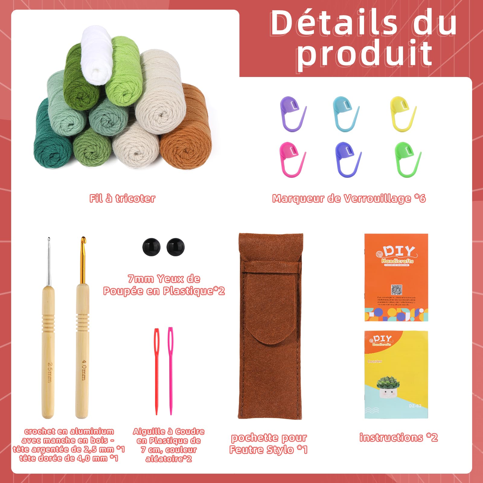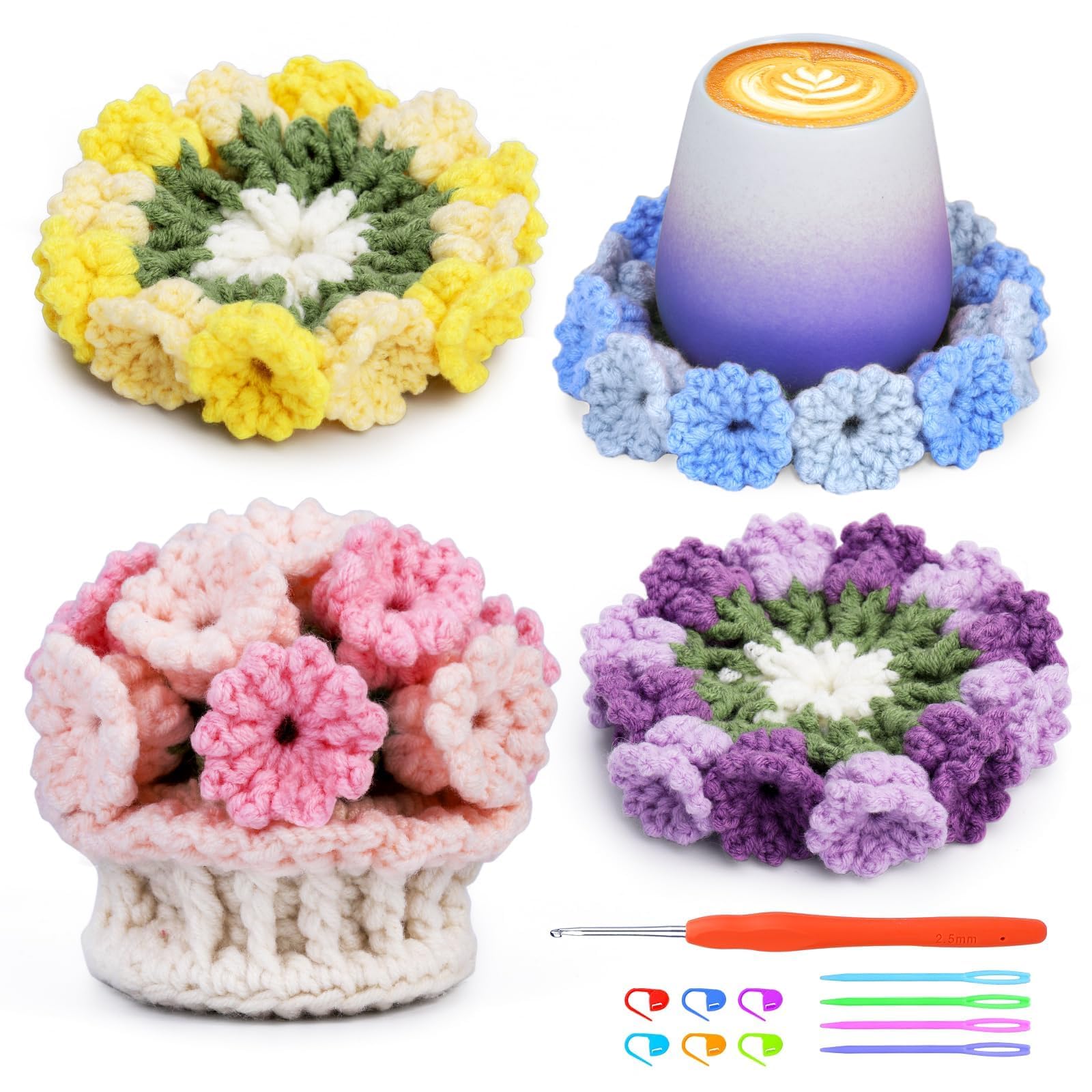 Facile à faire : notre kit de tricot au crochet pour tasse à thé convient aux personnes de tous âges. Kit Crochet Débutant Kit De Crochet Pour Débutant,Kit De Démarrage Au Crochet Avec Tutoriels Vidéo étape Par étape, Kit De Crochet Pour - Beaux-Arts Et Loisirs Créatifs Amigurumi Kit Il peut être utilisé pour placer de belles tasses ou comme décoration de pot succulente mignonne lorsqu'elle n'est pas utilisée Développer des loisirs : vous ne savez pas quoi faire pendant votre temps libre ? Faites du crochet avec nous. Mignon et beau : les sous-verres tissés avec des crochets en laine ont l'air très exquis et ne nécessitent pas d'outils complexes. Cadeau idéal : notre kit de démarrage au crochet DIY est également parfait comme cadeau pour la famille et les amis. Kit de crochet pour débutant, soleil, lune, étoile, fleur, arc-en-ciel C'est également un bon choix de donner ce kit de crochet pour débutants comme cadeau pour la famille et les amis. Dans le tutoriel vidéo, vous pouvez créer « 6 dessous de verre dans un pot succulent ». Le kit de crochet pour débutant contient suffisamment de fil, 2 crochets en aluminium à manche en bois (2,5 mm x 1, 4 mm x 1), 2 aiguilles à gros yeux en plastique (7 cm, couleur aléatoire), 6 marqueurs de maille, un sac de rangement en feutre et des instructions détaillées (français non garanti), ainsi qu'un tutoriel vidéo sur les étapes détaillées des dessous de verre au crochet Lorsque vous crochez ces sous-verres exquis, nous pensons que vous trouverez un plaisir inattendu. Il peut être utilisé comme cadeau d'anniversaire, cadeau d'anniversaire ou cadeau de Noël pour les amis ou la famille Patron Tasse de thé au crochet - l'Unvers de Lalu | Tasse de thé... Kit de crochet pour débutant, soleil, lune, étoile, fleur, arc-en-ciel... Suivez les étapes de la vidéo, vous pouvez facilement faire des sous-verres mignons. Amusez-vous à faire du crochet pour vous, vos amis et votre famille Le tutoriel vidéo est très détaillé, même si vous êtes un débutant en crochet, vous pouvez facilement maîtriser les techniques de crochet et terminer votre travail Le kit de crochet basique est facile à faire.