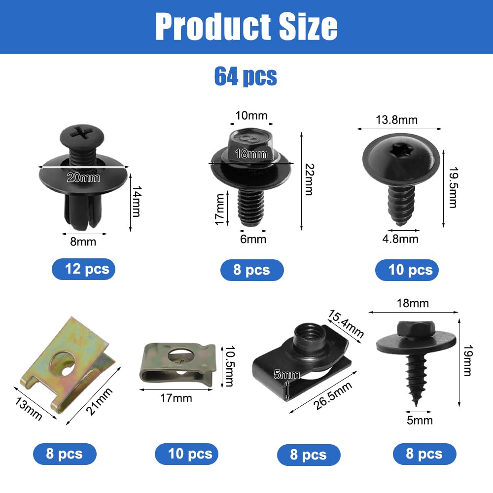 Clips de fixation d'aile en plastique universels pour voiture - Auto Si vous avez des questions, veuillez contacter le service client. Agrafe Pare-chocs Auto Kit De Fixation Voiture 72 X U Clips Et Vis De Carrosserie Auto Kit à Vis Et Vis Clips Carrosserie Lot 72 Pièces La couleur du produit est liée à votre moniteur et à votre environnement de prise de vue, veuillez vous référer au produit réel. Lntyq 20 Pièces Clips de Fixation Voiture, Agraphe Voiture et Rivets... 170Pièces clips de fixation voiture,clips voiture,agrafes carrosserie... 【Facile À Installer Et À Remplacer】ce modèle vis d'aile de carrosserie ne nécessite pas d'autres outils. 【High Quality Material】this model vis d'aile de carrosserie is made of high quality carbon steel material, high hardness, corrosion and rust resistance, not easy to break, also can be used normally in wet environment and durable. 【Multifonctionnel】ce modèle vis d'aile de carrosserie convient pour fixer les revêtements de voiture, les pare-chocs, les ailes, les protections contre les éclaboussures, les refroidisseurs, les plaques d'immatriculation de voiture et de moto, les grilles de radiateur et plus encore. Le dessin de taille est pour référence seulement, et le produit réel prévaudra. 【Stockage Facile】ce modèle vis d'aile de carrosserie toutes les vis sont emballées et triées dans une boîte de stockage en plastique, accidentellement endommagé, pas facile à confondre après utilisation, vous pouvez facilement trouver le style que vous voulez ; Spécifications : Nom : Clip de voiture Couleur : Métallique Matériau : Acier au carbone Taille : comme indiqué Poids : 280g Le forfait comprend : Inclut : 72STK Metal Nut Screw Female Fixture Kit Attention : Il y a des erreurs dans la mesure manuelle.